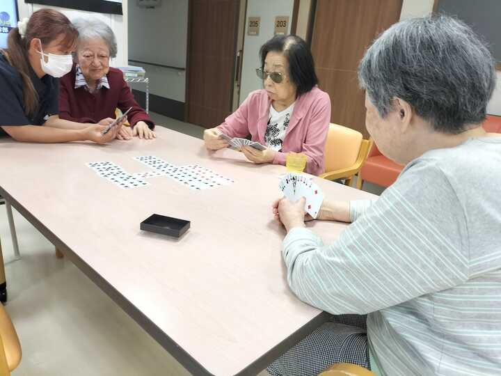 2024.09.19 活動報告 【2F】トランプ Tweet シェアする 皆で7並べをしました~。 「5がないわ、5が」 「ここ誰か持ってるんじゃない?」 「ふふふ」 トランプ遊びは楽しいですね♪ 優っくりグループホーム鎌田 永竹 前の記事 2024.09.19 活動報告 【2F】洗濯物たたみ 次の記事 2024.09.18 活動報告 【1F】作って食べようの日 一覧へ戻る