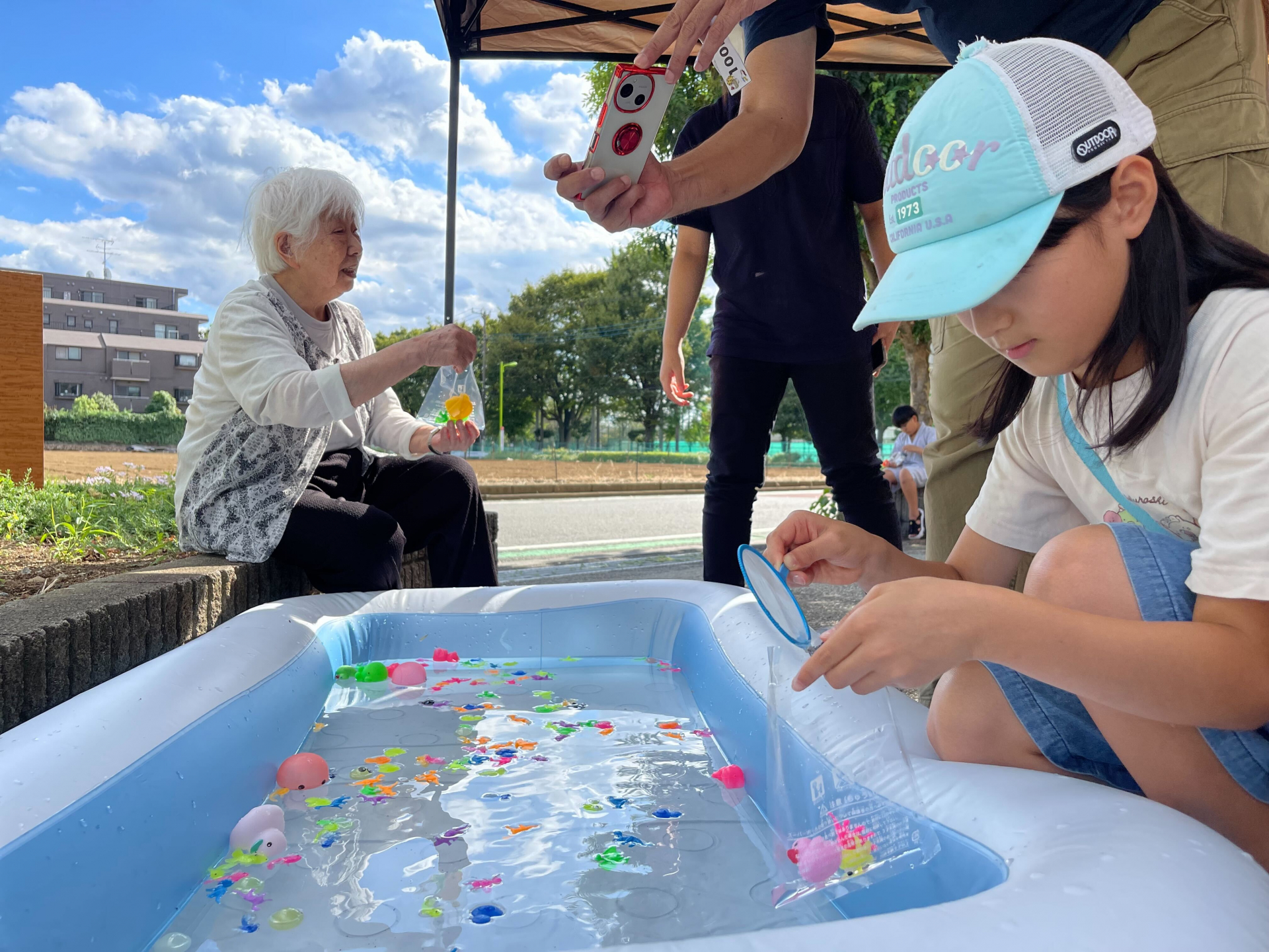 職員の娘と入居者様と一緒に楽しくボールすくいをやってみました。