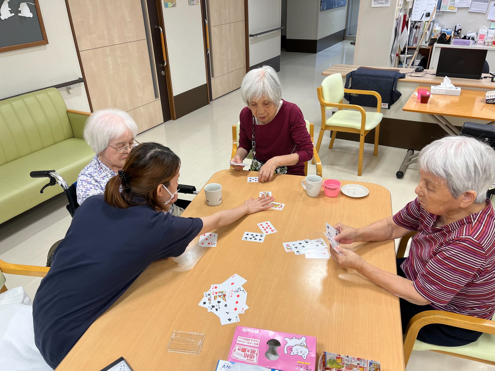 本日、おやつ後に少しいの時間でトランプゲームを一緒にやりました。