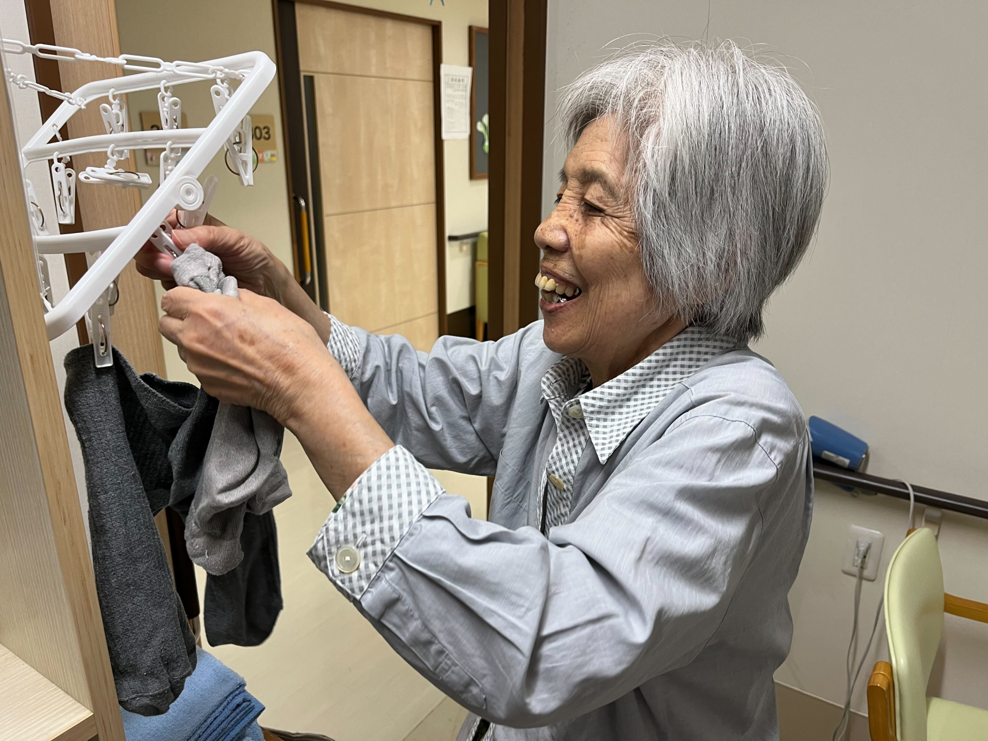 職員がお風呂場のドア開けたままで洗濯物を干したところに「お姉さん、手伝いましょうか?」と仰ってました。