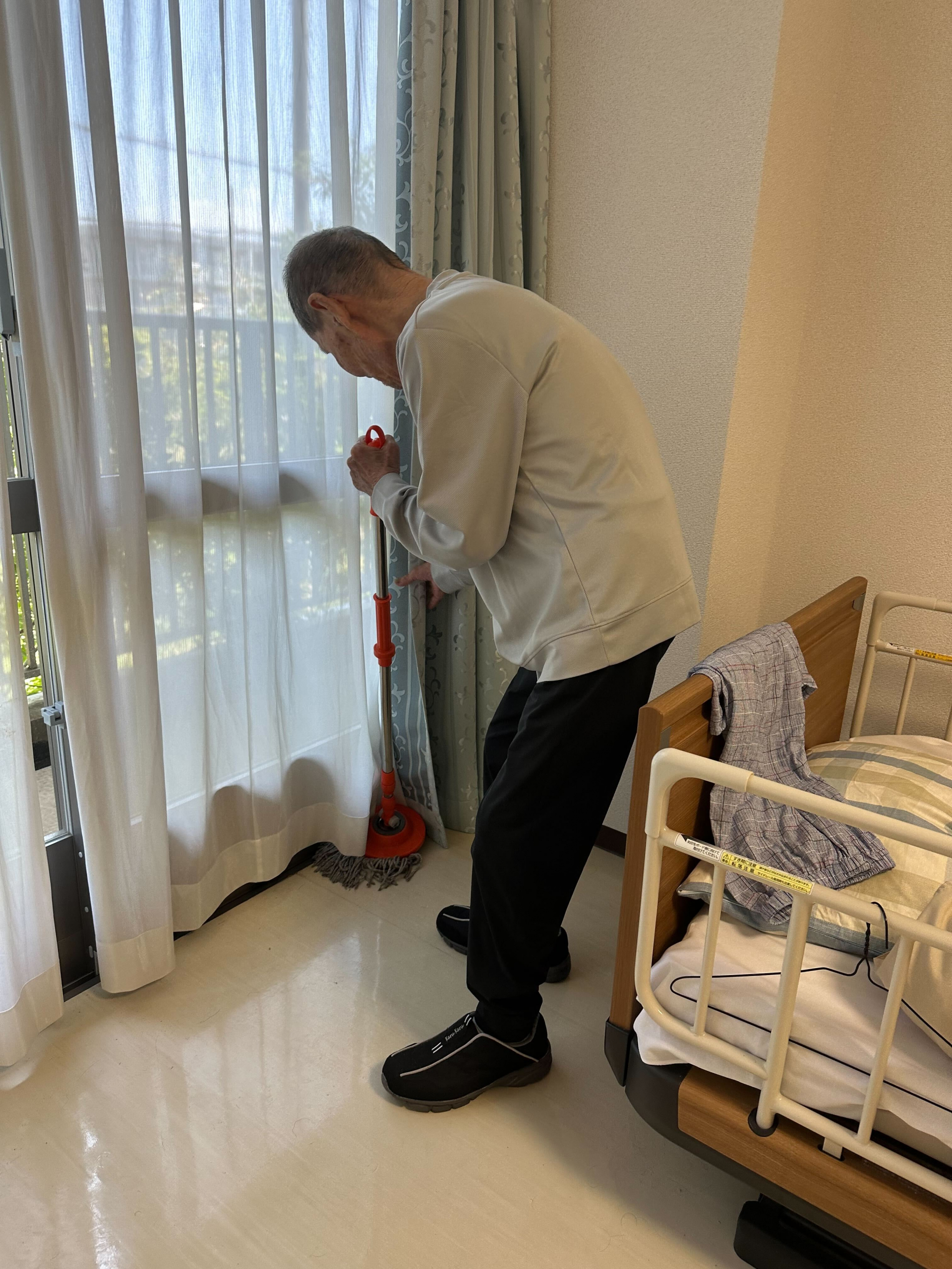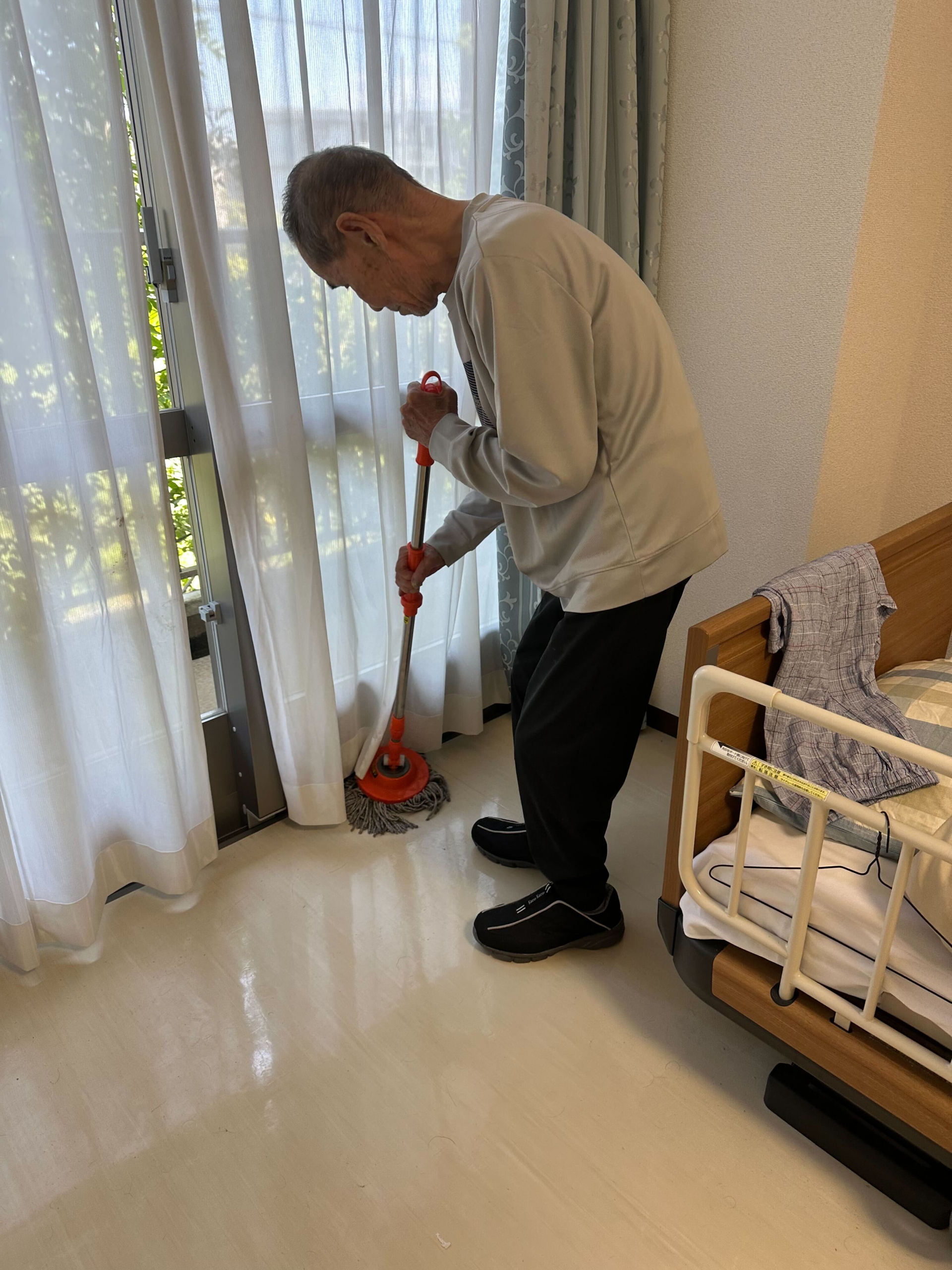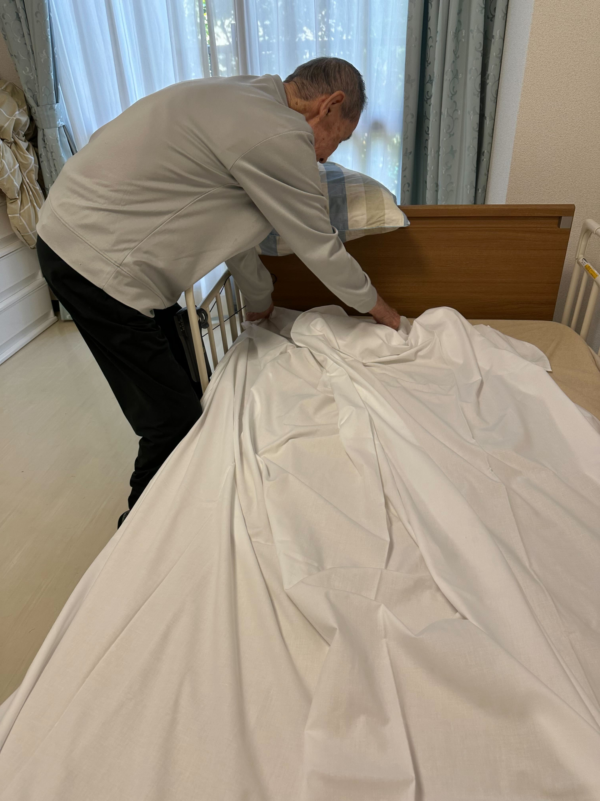 ご入居者様が自分の部屋をリネン交換と部屋掃除をしました。