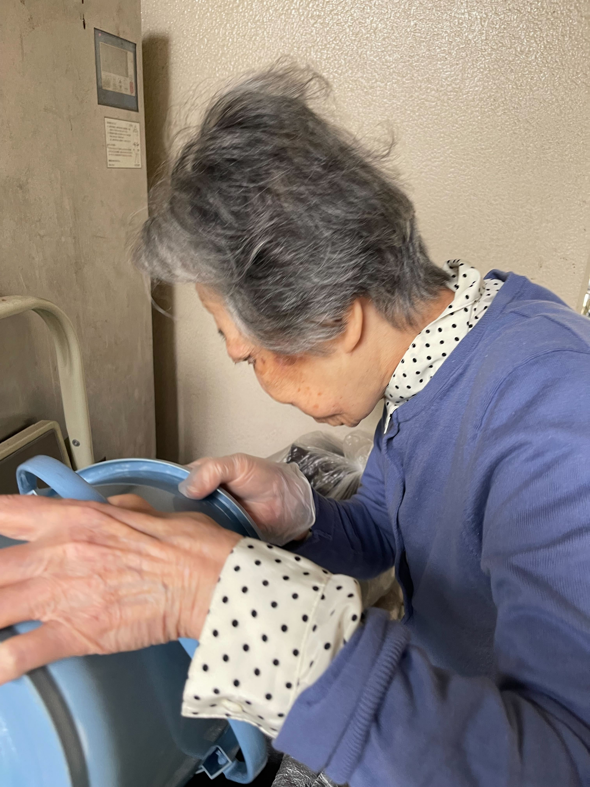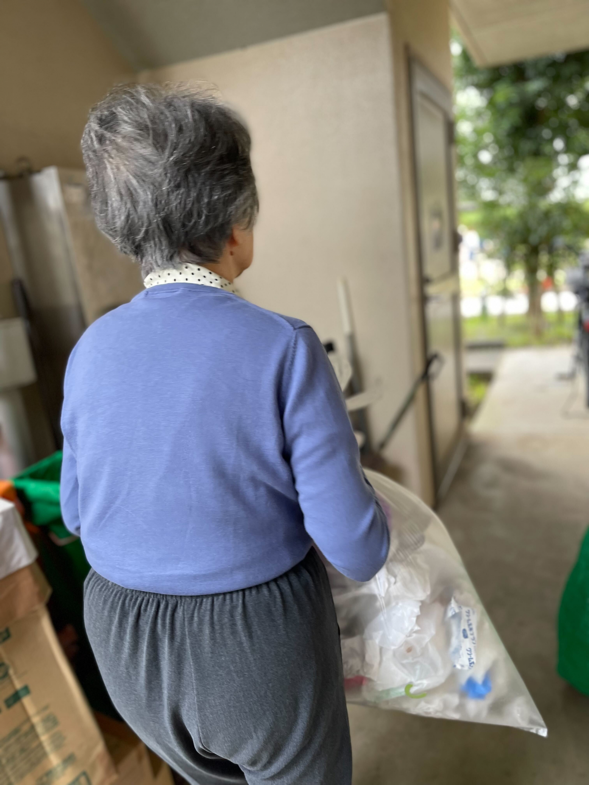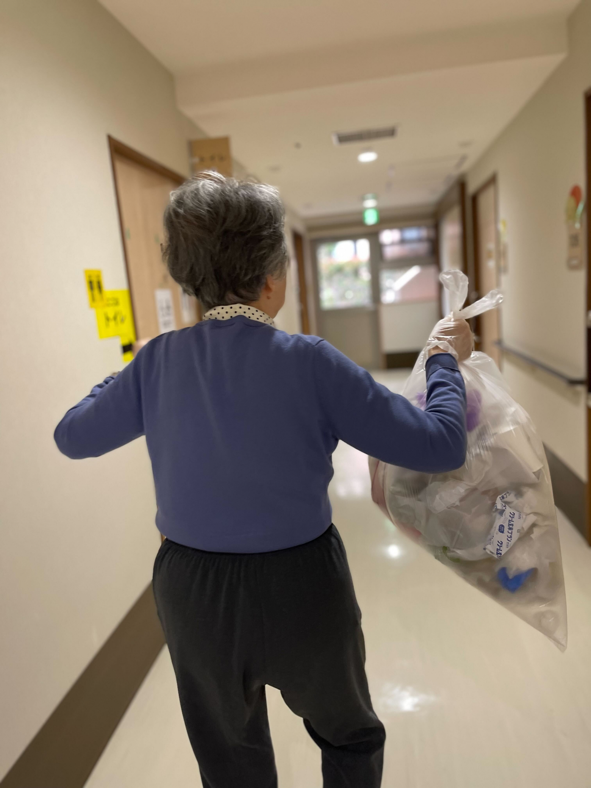 一緒にゴミ捨てましょうかと声かけるときに凄く嬉しそうな顔をしています。「はい、行きましょう」と喜んで仰ってました。