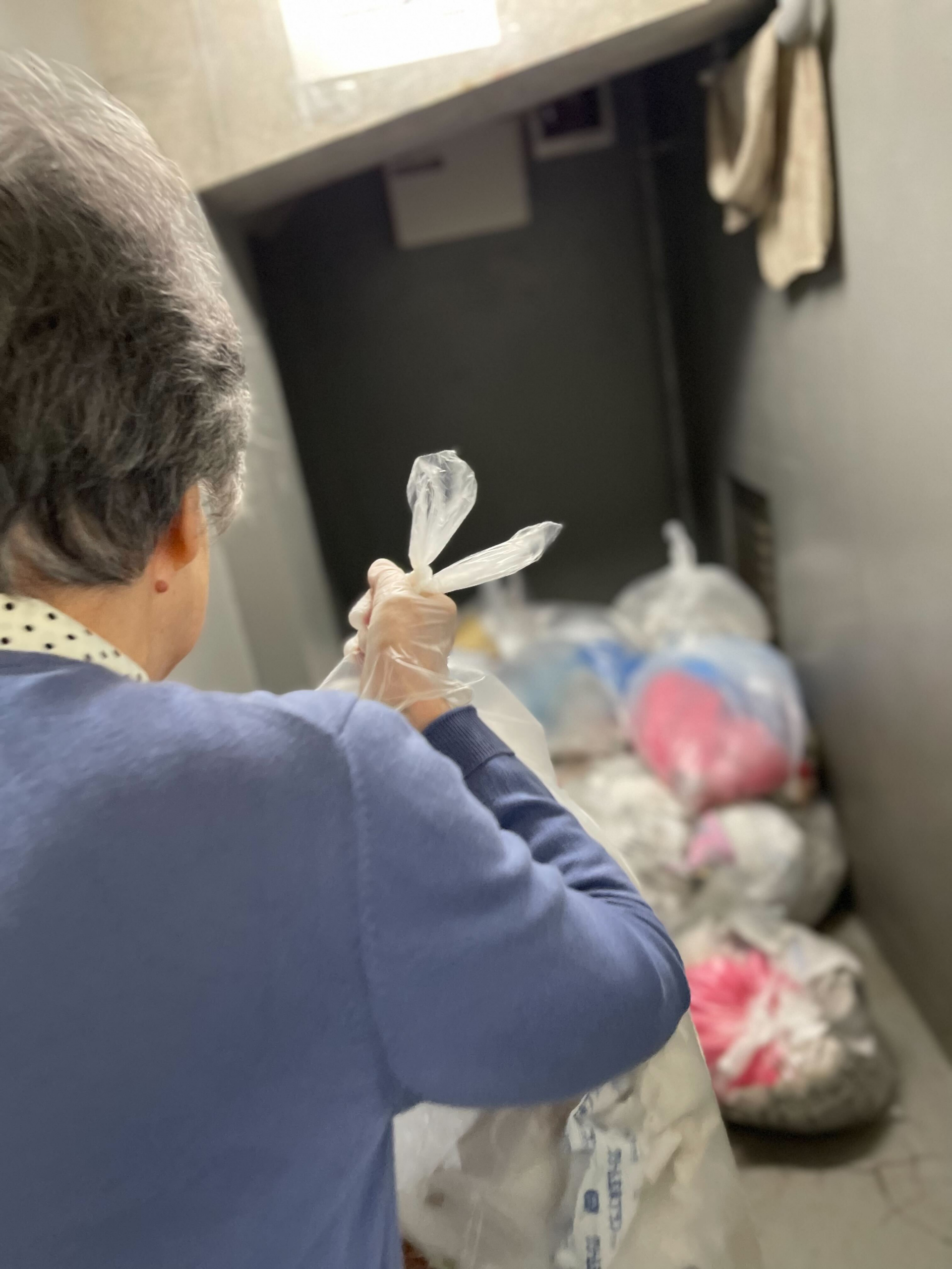 おやつの前に午前中のゴミを職員と一緒にまとめて集まってます。