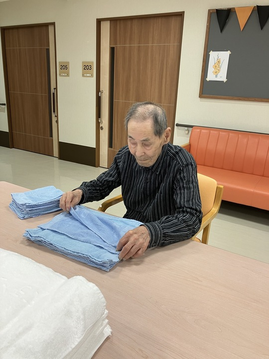 2024.10.24 活動報告 《2F》タオル畳み Tweet シェアする タオル畳みをして下さる皆様です。 沢山使うので、畳んで置いて頂けると大変助かります(^^) いつもありがとうございます! 優っくりグループホーム鎌田 永竹 前の記事 2024.10.24 活動報告 【3階】花が大好き 次の記事 2024.10.24 活動報告 《2F》塗り絵 一覧へ戻る