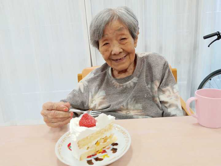 10月お誕生日会にて、ケーキを召し上がる皆さまです。