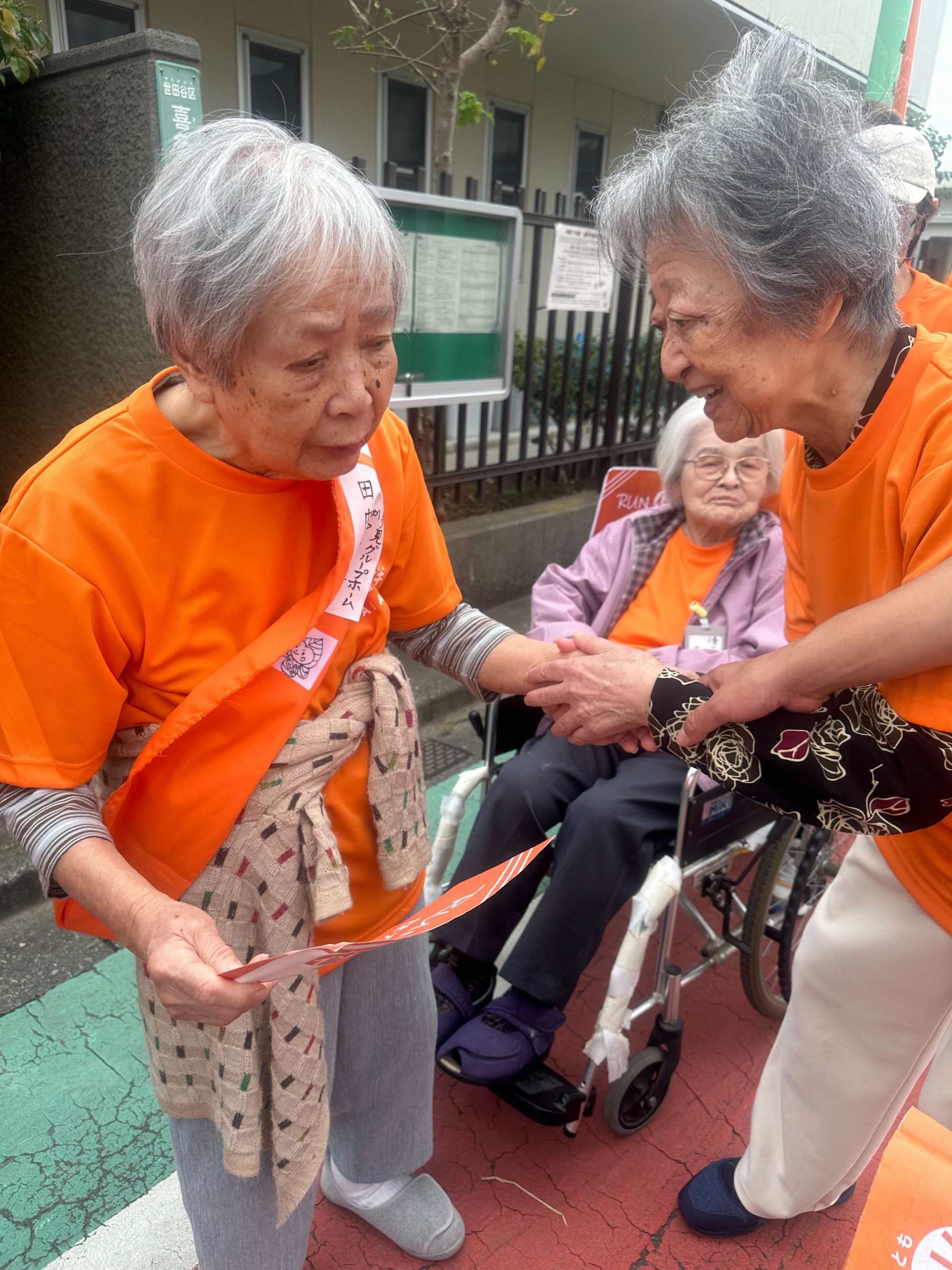 同じ法人の喜多見GHのご利用者にタスキを掛けました。これから、走るの続きを頑張って下さいね~応援していますよ~