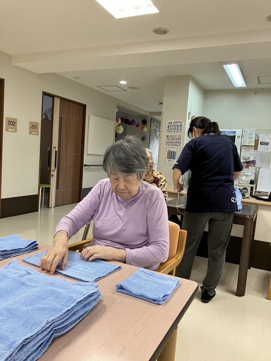 2024.11.05 活動報告 ≪2F≫タオル畳み Tweet シェアする タオル畳みをしてくださる皆さまです。 いつも丁寧に畳んでくださり、どうもありがとうございます! 優っくりグループホーム鎌田 永竹 前の記事 2024.11.05 活動報告 ≪2F≫盛り付け 次の記事 2024.11.05 活動報告 ≪2F≫ハロウィンのかぶりもの 一覧へ戻る