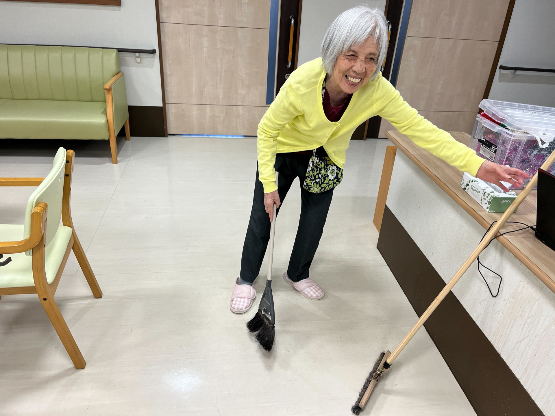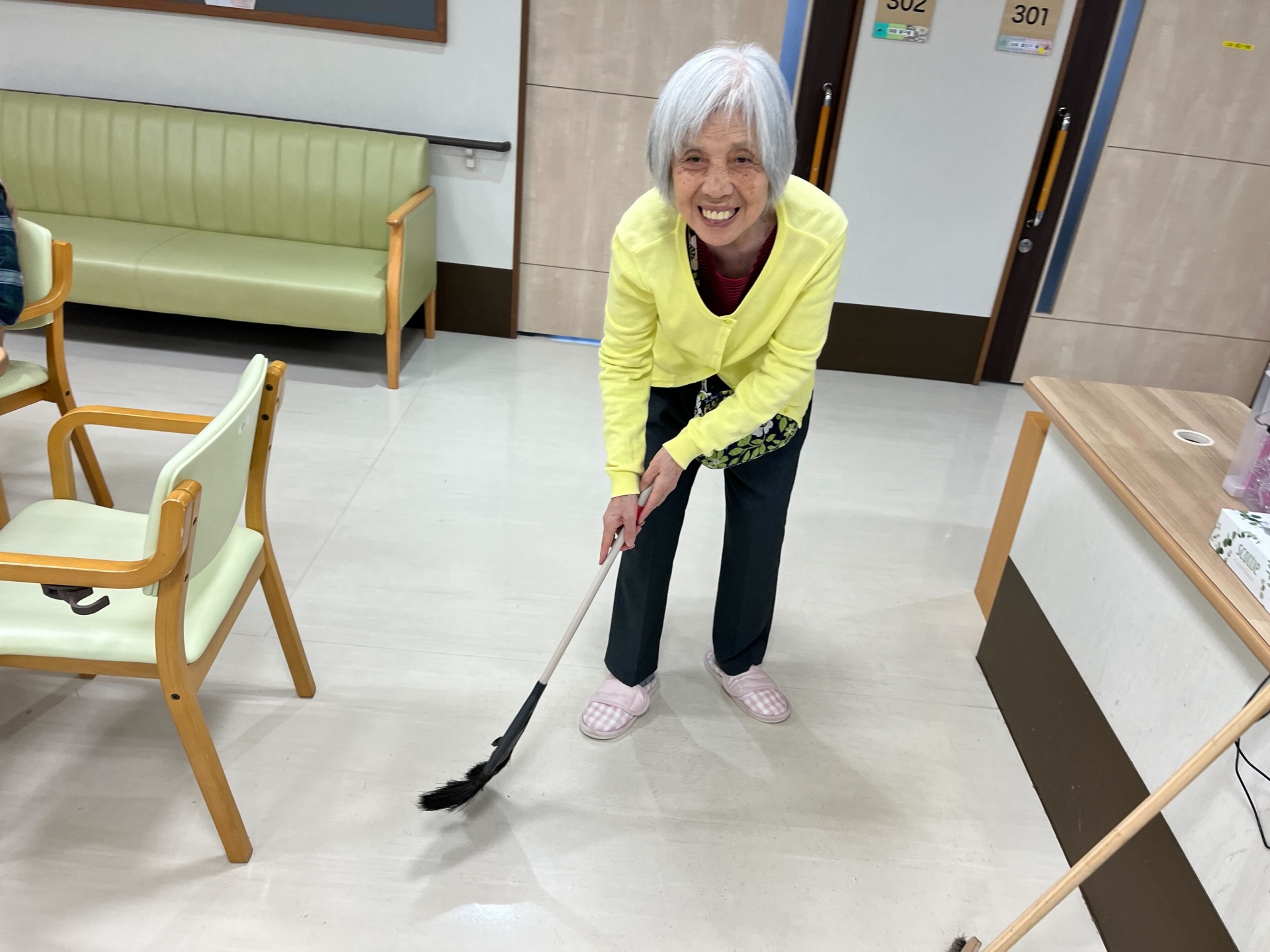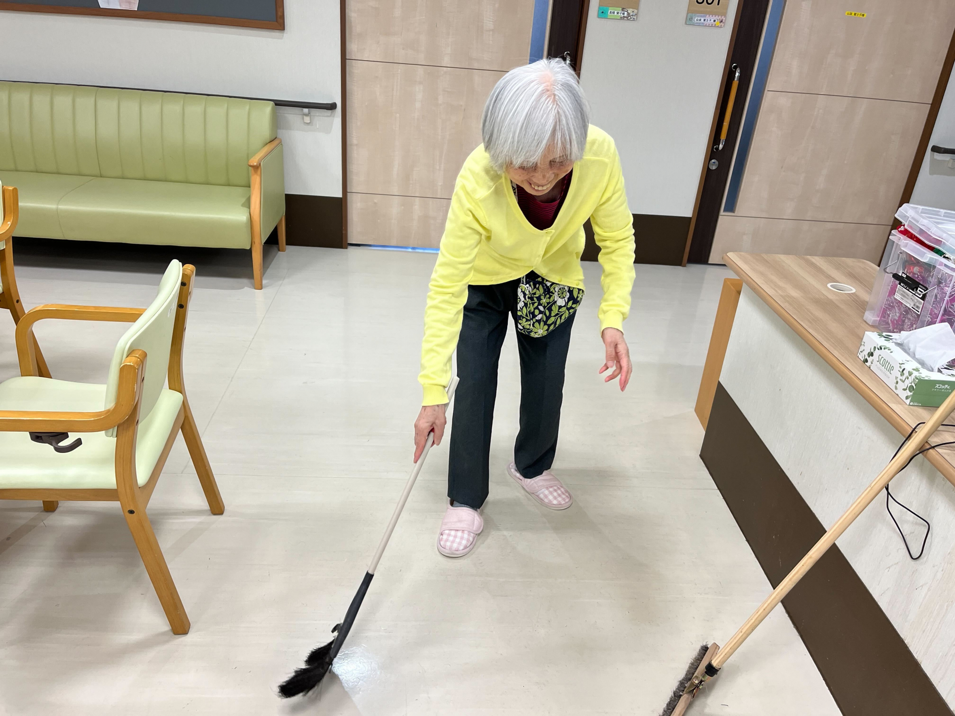 今日の朝ごはんの後に*様と一緒にフロアの掃除をしています。