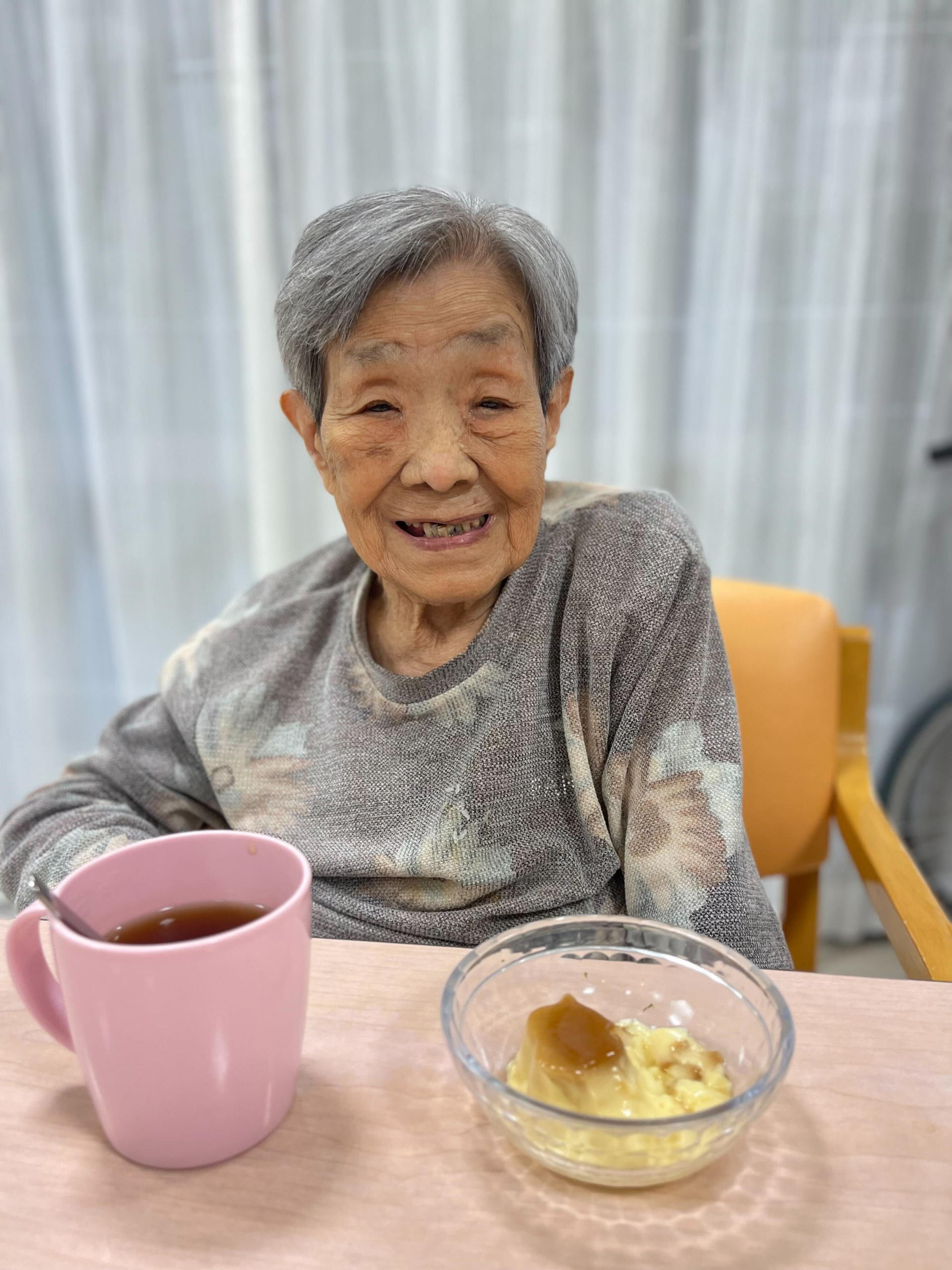 今日ののおやつはプリンと紅茶です。