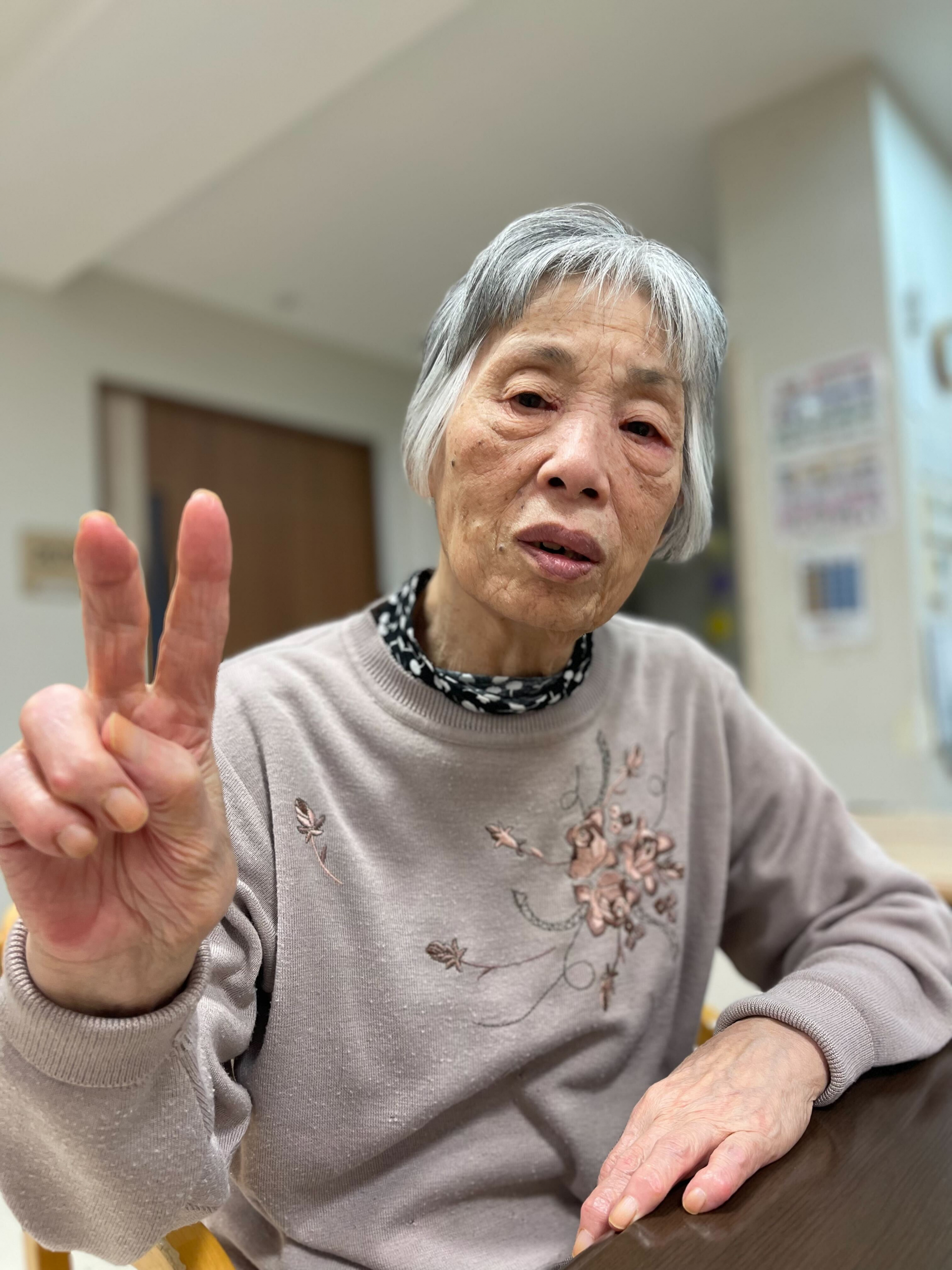 今回はPEACEのポーズです。