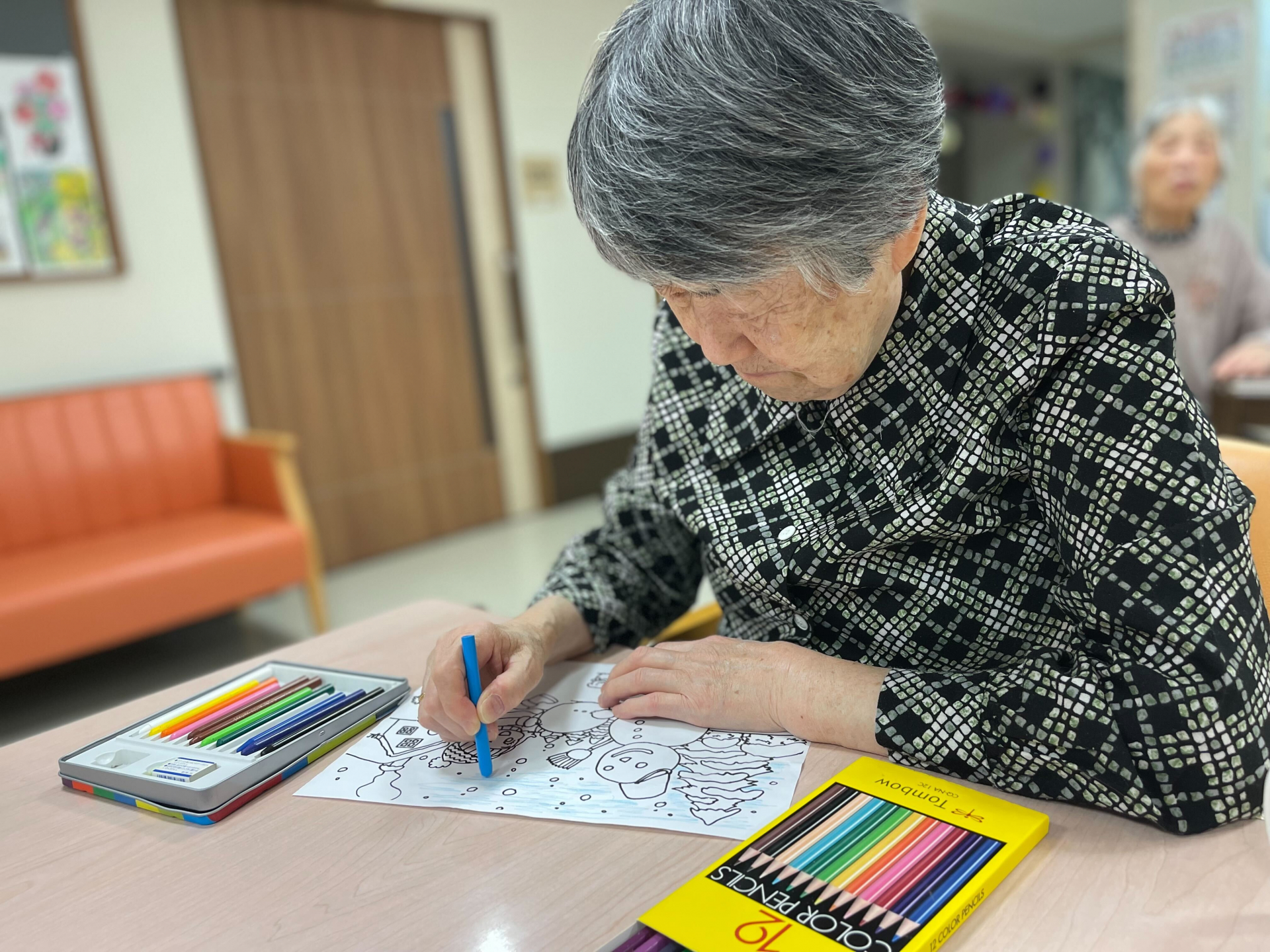 お二人が塗り絵大好きで良くきれいに絵を塗ってもらっています。