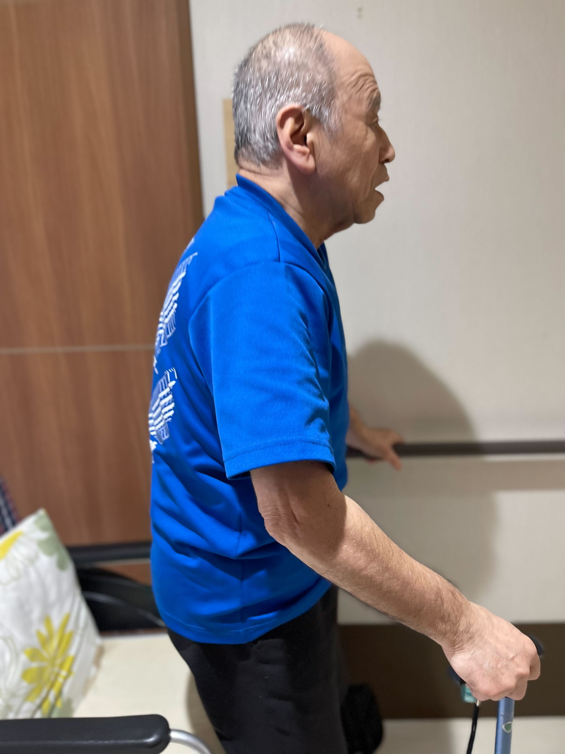 歩く前に、深呼吸から始まって、10回ぐらい手すりをつかまりながら立ちました。