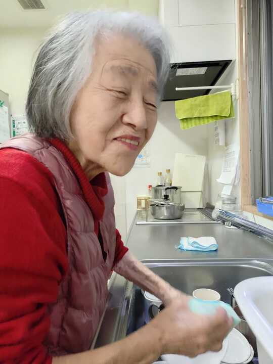 おやつの後、U様が食器洗いを申し出てくださいました。