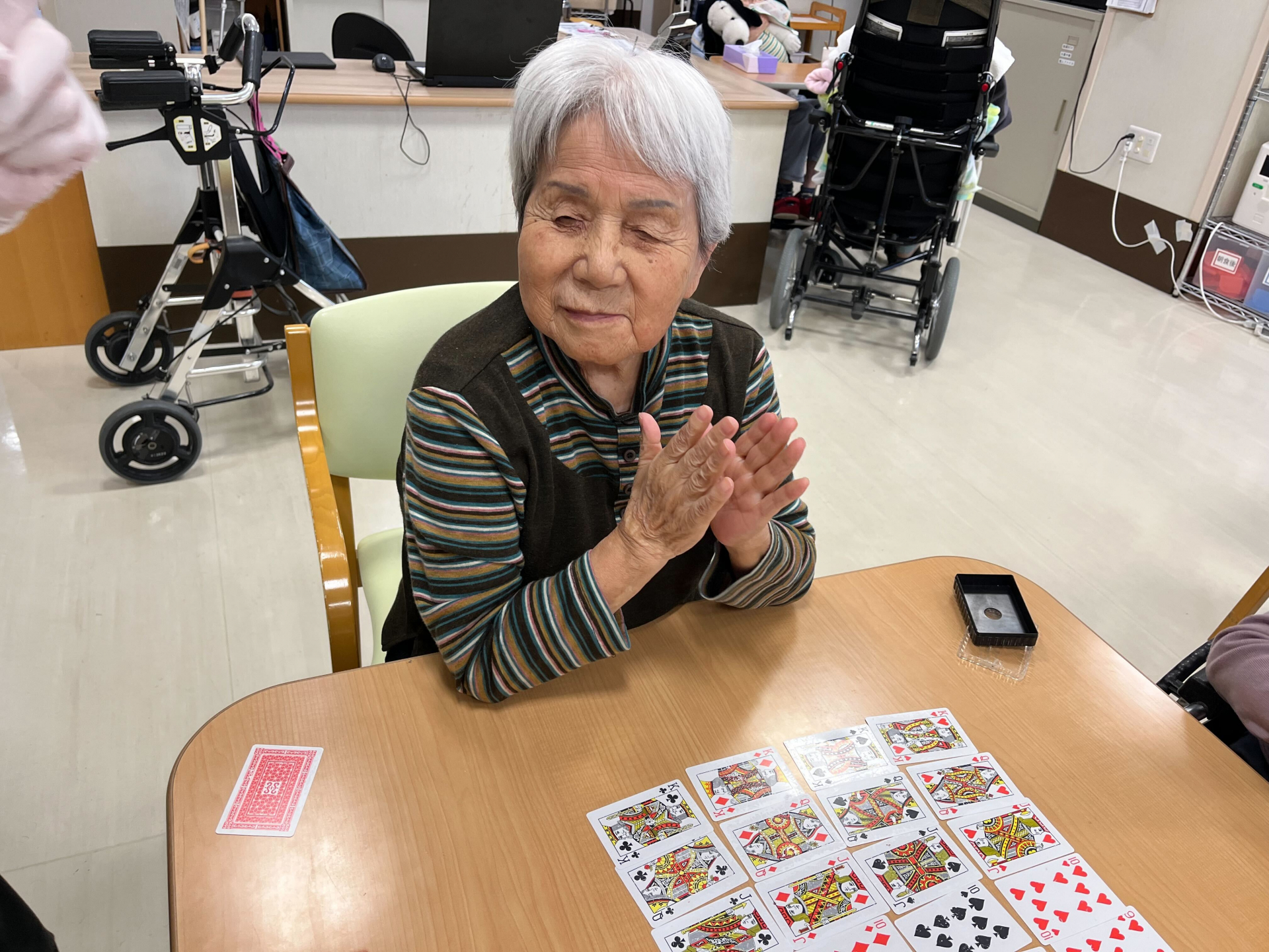 2024.11.01 活動報告 【3階】七並べ Tweet シェアする 皆様、現在鎌田グループホームが職員募集しています。私達の仲間になりませんか? 是非、一緒に介護のケアを楽しくやりましょう~ 待ってます~♡('◇')ゞ♡ 鎌田GH エレン 前の記事 2024.11.01 活動報告 【1F】11月のカレンダー作成 次の記事 2024.11.01 活動報告 鎌田も料理コンテストを参加しました! 一覧へ戻る