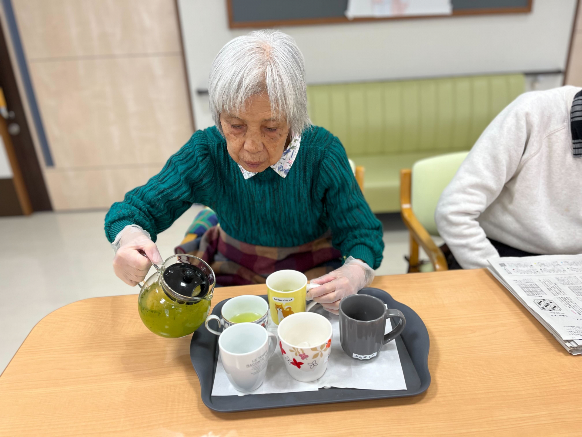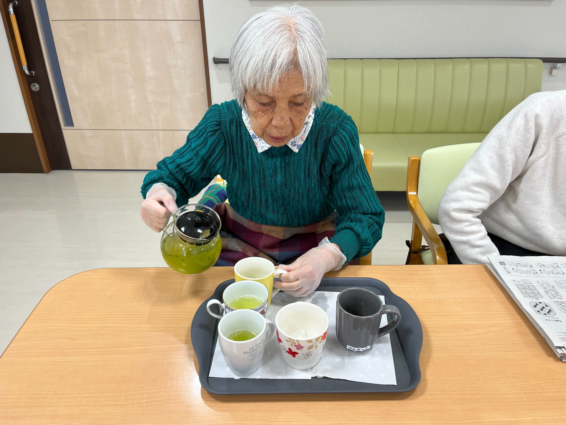 今日の昼ごはんに各コップにお茶を入れてくれた*様です。