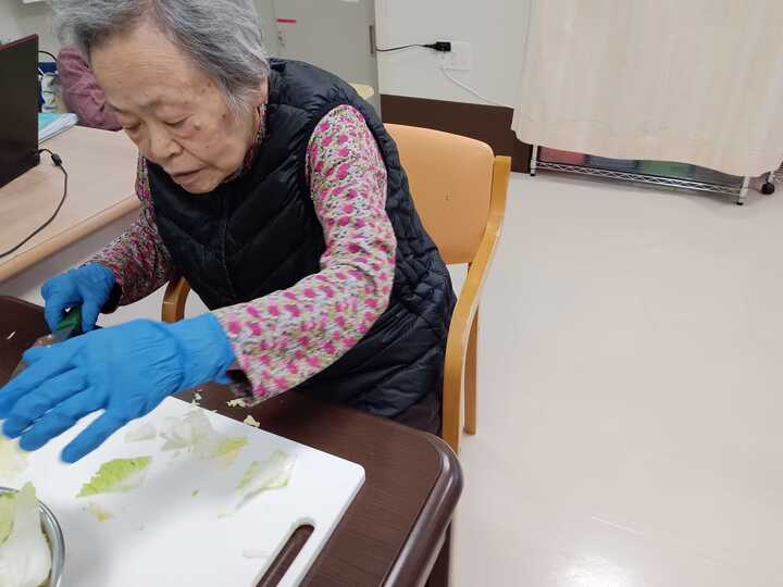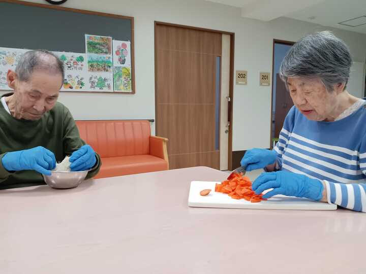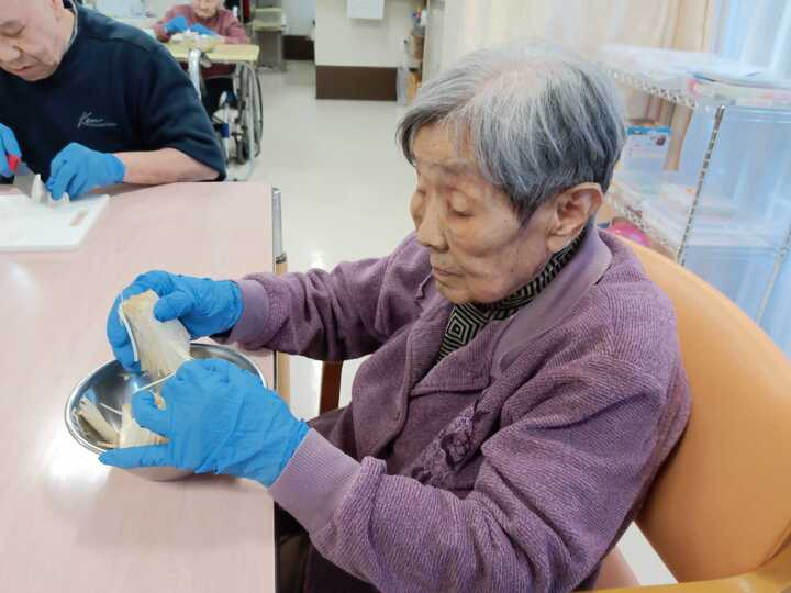 野菜や鶏肉を切ったり、エノキをほぐしたりと、全員で頑張りました!