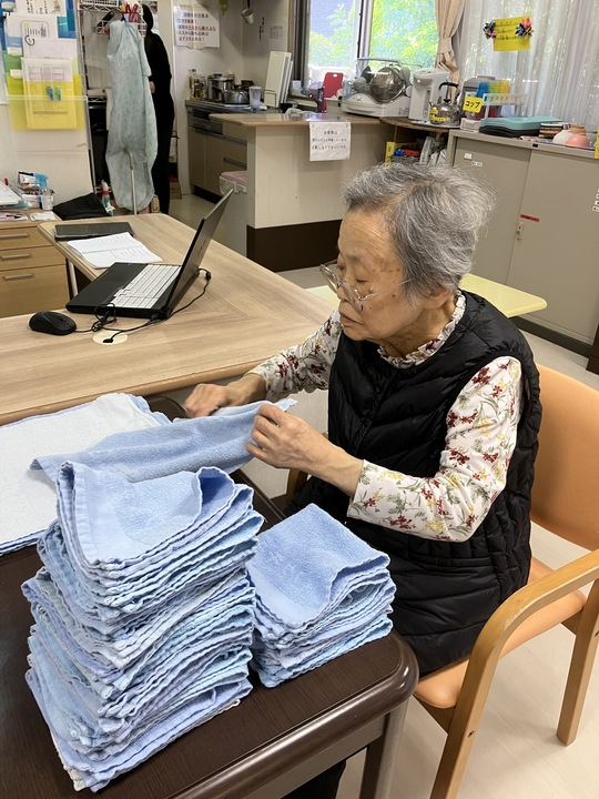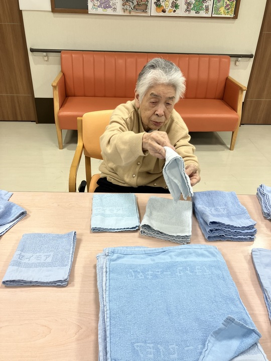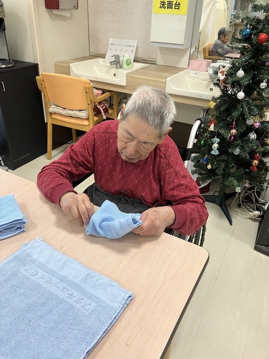 2024.12.15 活動報告 《2F》 タオル畳み Tweet シェアする タオル畳みをして下さる皆様です。 昨日入居されたばかりのK様も、早速皆様と一緒に畳んでくださっています! 皆様、いつも本当にありがとうございます(^^) 優っくりグループホーム鎌田 永竹 前の記事 2024.12.15 活動報告 《2F》 年賀状を書きました① 次の記事 2024.12.14 活動報告 【1F】食器を片付ける 一覧へ戻る