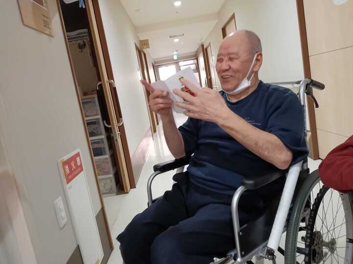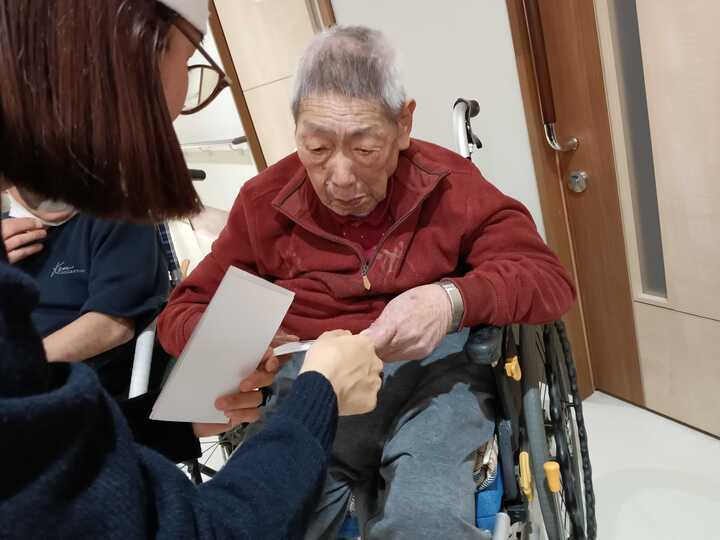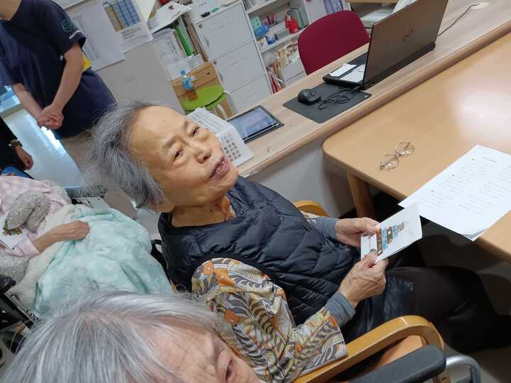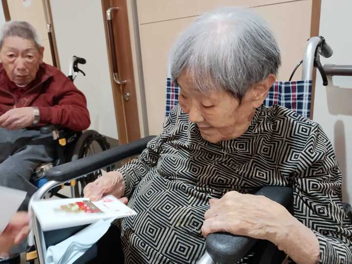 サンタさんから手作りのクリスマスカードを貰って、涙ぐまれる方も。