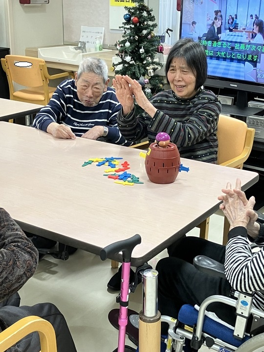 2024.12.21 活動報告 ≪2F≫ 黒ひげ危機一髪! Tweet シェアする 皆で「黒ひげ危機一髪!」で遊びました(^^) なぜか謎の骸骨も登場し、大盛り上がり! 皆で遊ぶと楽しいですね(^^) 優っくりグループホーム鎌田 永竹 前の記事 2024.12.21 活動報告 ≪2F≫ タオル畳み 次の記事 2024.12.21 活動報告 【3階】タオル畳み 一覧へ戻る