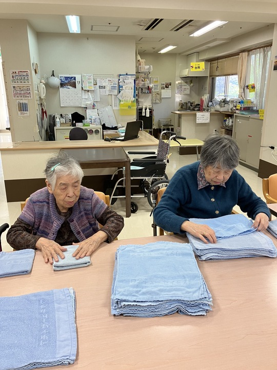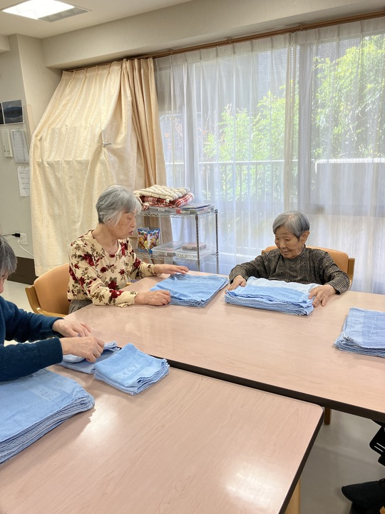 新しい方には前からの入居者様が畳み方を教えて下さり、