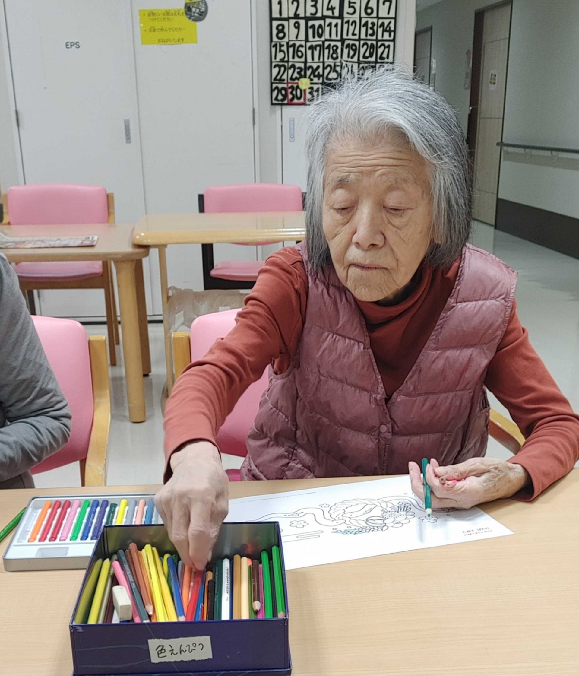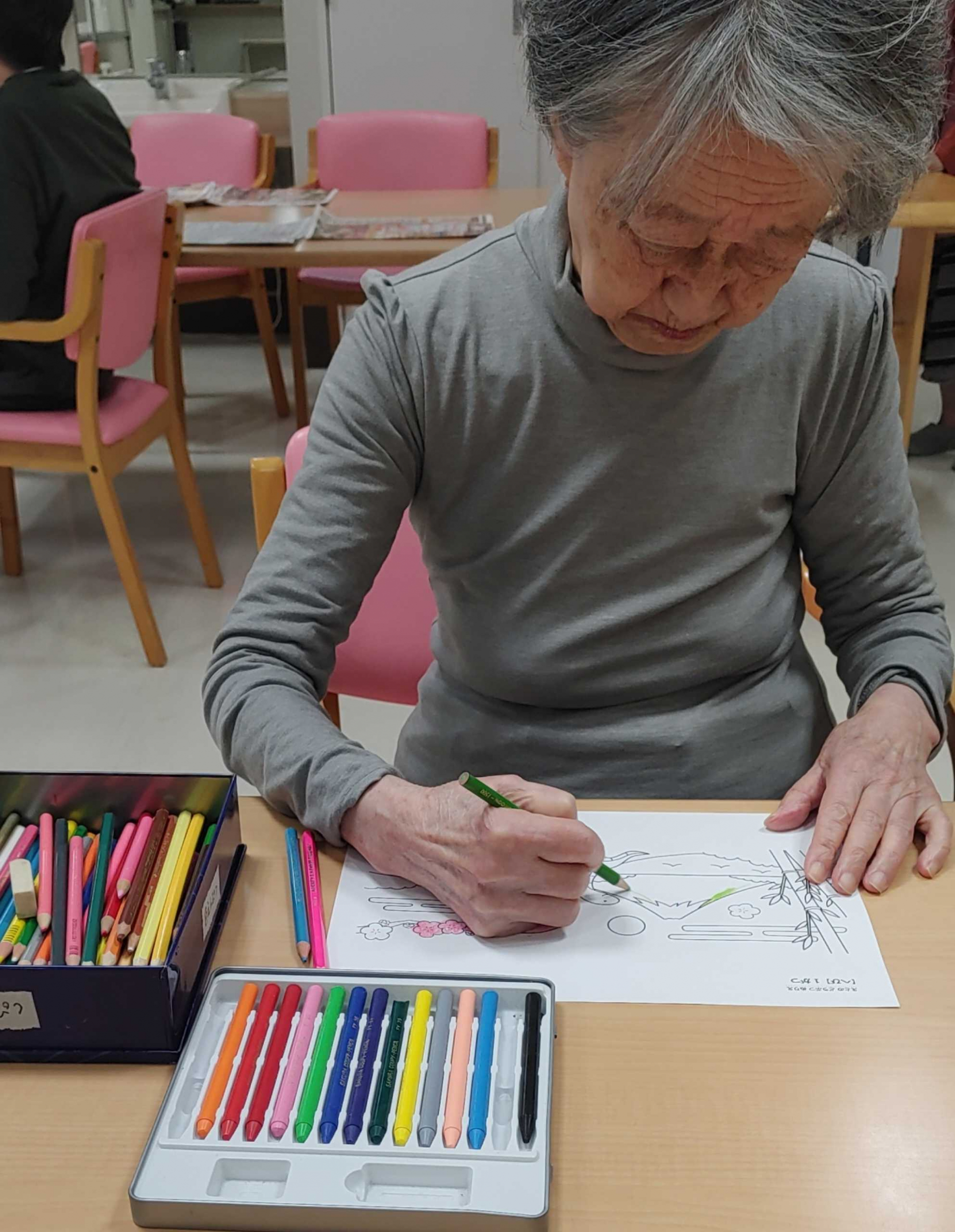 2024.12.31 活動報告 【1F】塗り絵 Tweet シェアする 今日のレクは塗り絵です。 すごーい! 皆さん頑張ってるね! 出来ました!!! 素敵な塗り絵ですね^^ お疲れ様でした!またよろしくお願いします^^ ゆっくりグループホーム鎌田 エヴァ 前の記事 2025.01.01 活動報告 【1F】洗濯物たたみ 次の記事 2024.12.29 活動報告 【1階】ソファーで話しながら仲良し 一覧へ戻る