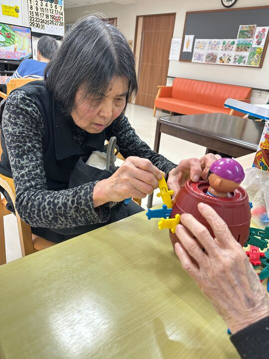 2025.01.26 活動報告 《2F》 黒ひげ危機一髪! Tweet シェアする 黒ひげ危機一髪で勝負! M様も(向かいの)K様も真剣な表情です・・・・ さて勝敗の行方は、そして黒ひげ君の運命はいかに~~~~~~~ 優っくりグループホーム鎌田 永竹 前の記事 2025.01.27 活動報告 《2F》好きな物を作ろうの日 次の記事 2025.01.26 活動報告 《2F》 洗濯物畳み 一覧へ戻る
