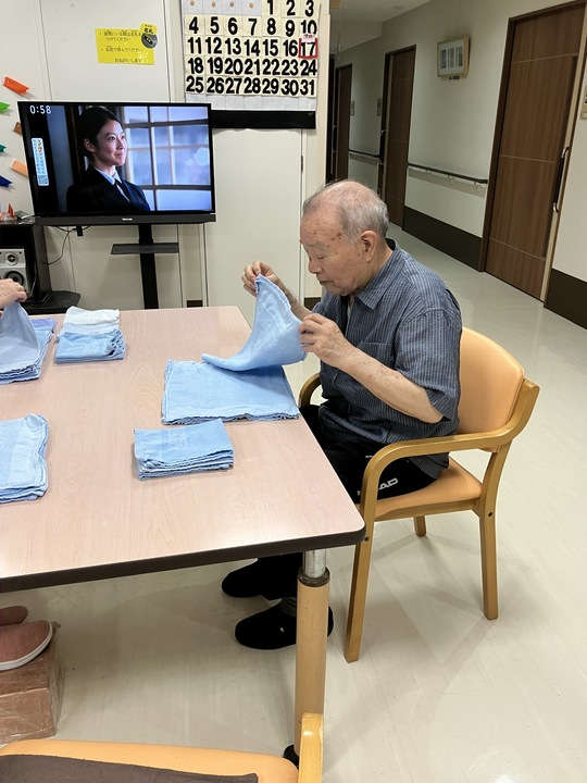 2025.05.17 活動報告 《2F》タオルたたみ Tweet シェアする 皆様で手分けして、タオルを畳んでくださいました。 小山のようなタオルも、皆で畳めばあっという間に終わりますね☆ いつもありがとうございます! 優っくりグループホーム鎌田 永竹 前の記事 2025.05.18 活動報告 《3F》数独 次の記事 2025.05.17 活動報告 《3F》7ならべ 一覧へ戻る