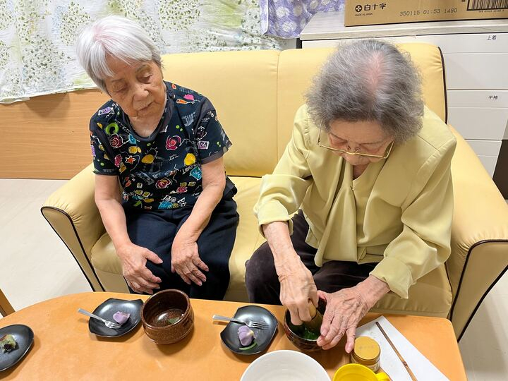 お誕生日のお祝いに美味しい和菓子を用意して、K様にお抹茶を立てて頂きました~。