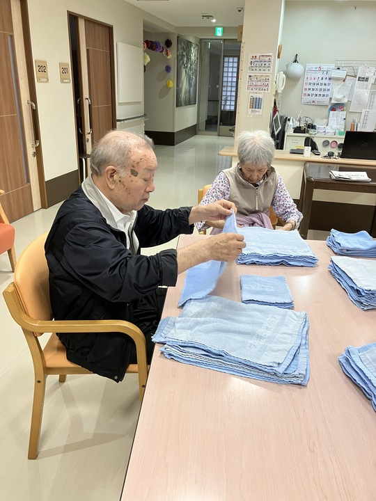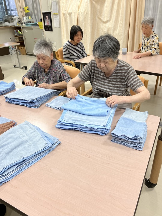 2025.06.01 活動報告 ≪2F≫ タオル畳み Tweet シェアする 皆でタオルを畳んでいる所です。 沢山のタオルも、皆でお話しながら畳むとあっという間に終わりますね。 いつも綺麗に畳んでくださってありがとうございます(^^) 優っくりグループホーム鎌田 永竹 前の記事 2025.06.01 活動報告 【1F】お散歩 次の記事 2025.06.01 活動報告 ≪3F≫ お散歩 一覧へ戻る