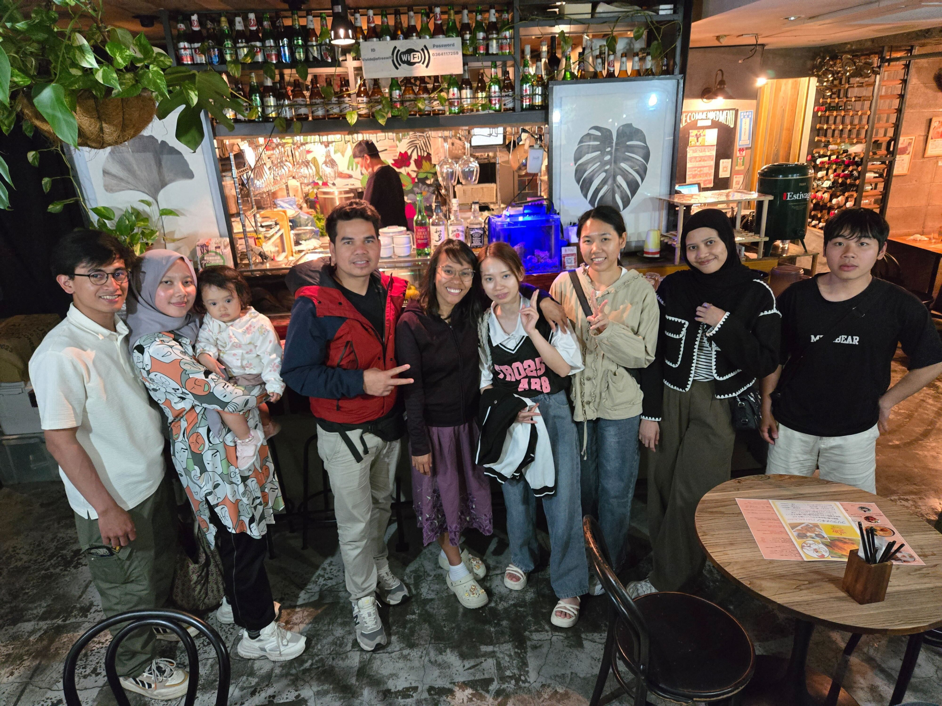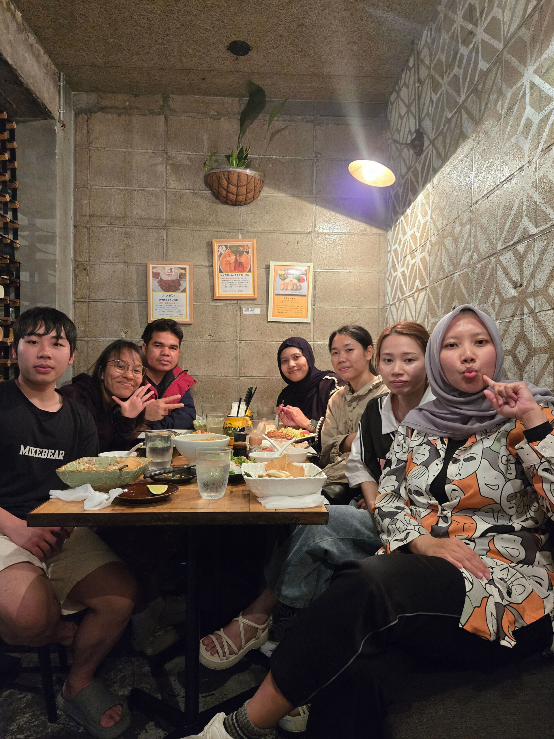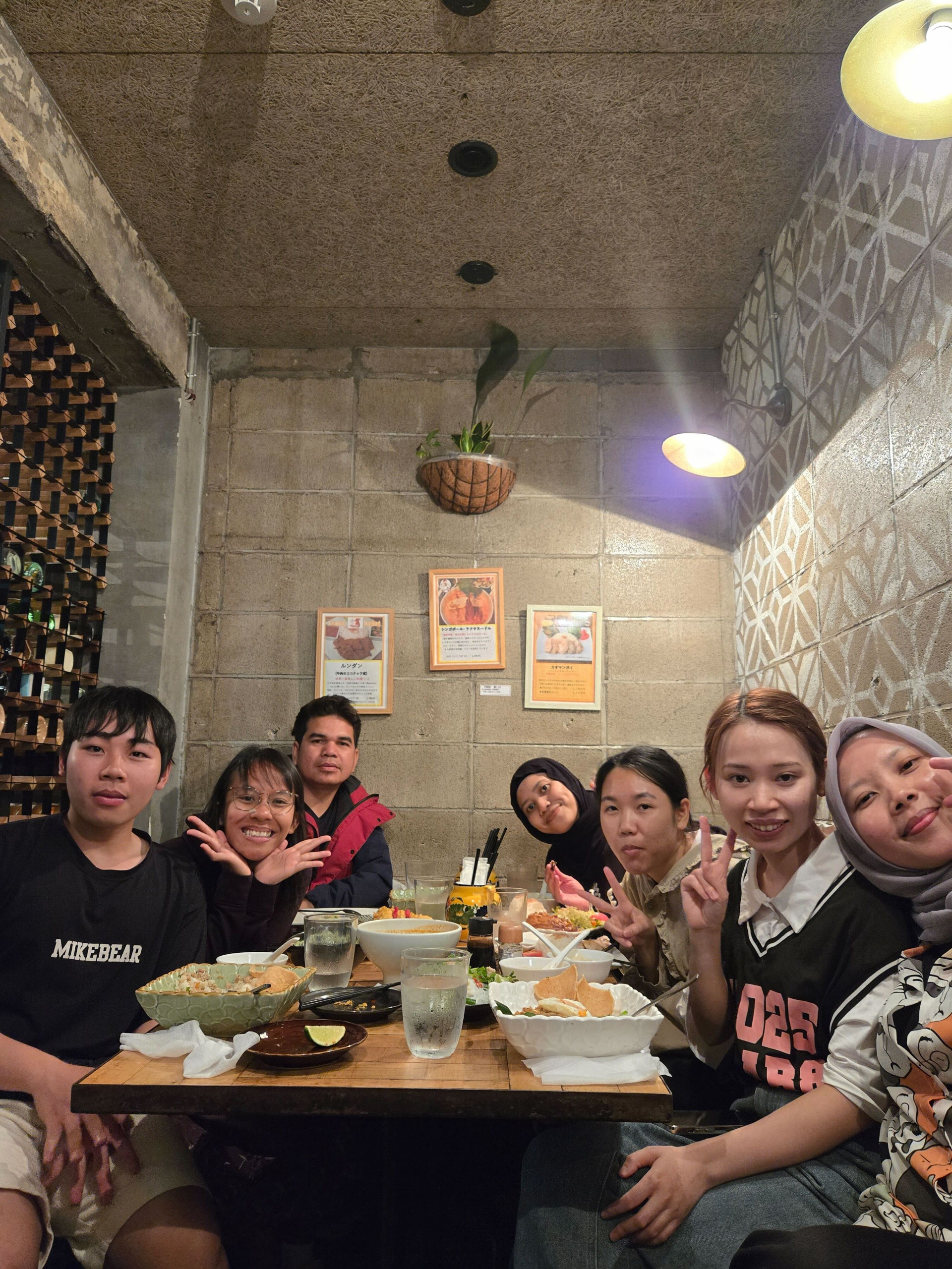 歓迎会は職場から歩くと15分程アジア料理の店が有って、あそこに食事会をしました。皆、分かち合うために仕事の後、夜勤明けと休みの職員が全員参加しました。お店でとても賑やかになってそれぞれの国の言葉を教えて貰いました。