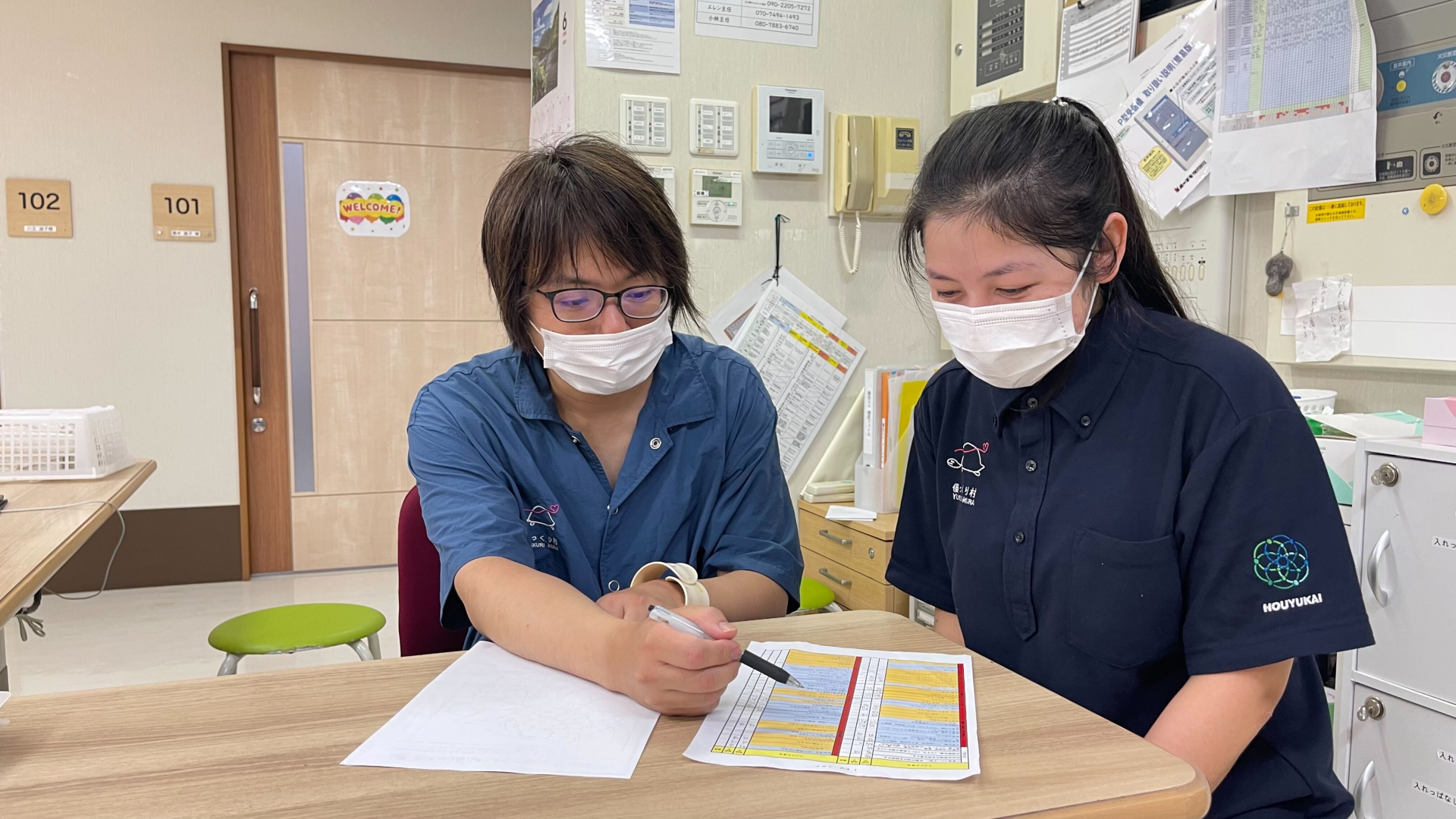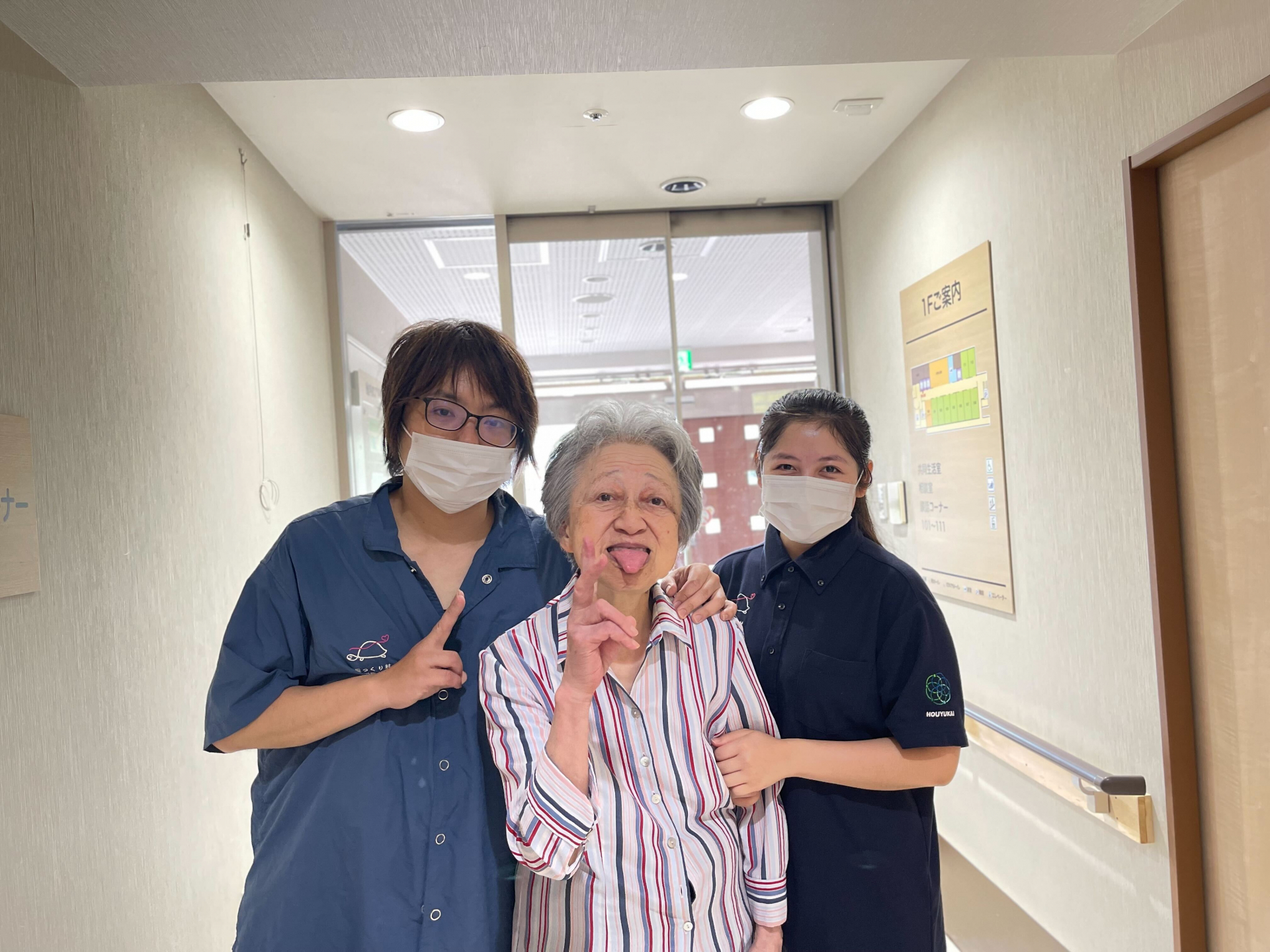 今月ミャンマーから入職されていた職員です。今日は日本人の先輩と研修で仕事内を教えて頂きました。とても優しい日本語で教えてくださり、分かりやすくなります。これは鎌田の良いところです。これから職員やご利用者様と楽しい時間を作りましょう~