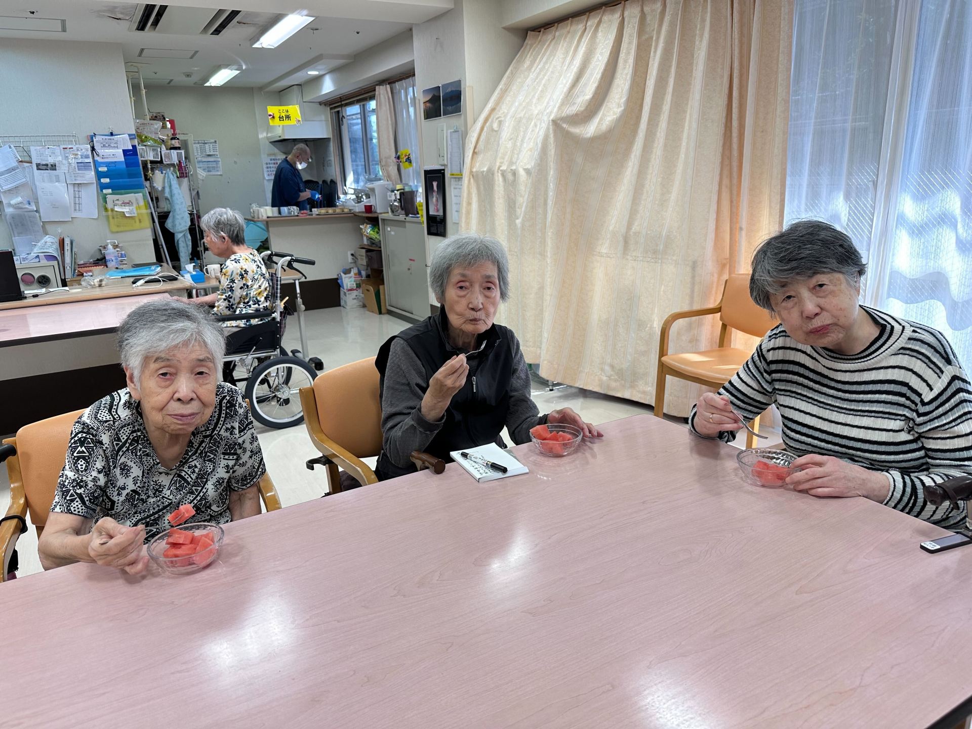 2025.06.20 活動報告 スイカおやつ Tweet シェアする 職員から頂いたスイカを皆で召し上がりました。 「甘くておいしいです」 良かったですね^^ ごちそうさまでしたー ゆっくりグループホーム鎌田 エヴァ 前の記事 2025.06.21 活動報告 【1F】新聞畳み 次の記事 2025.06.20 活動報告 《3F》脳トレ 一覧へ戻る