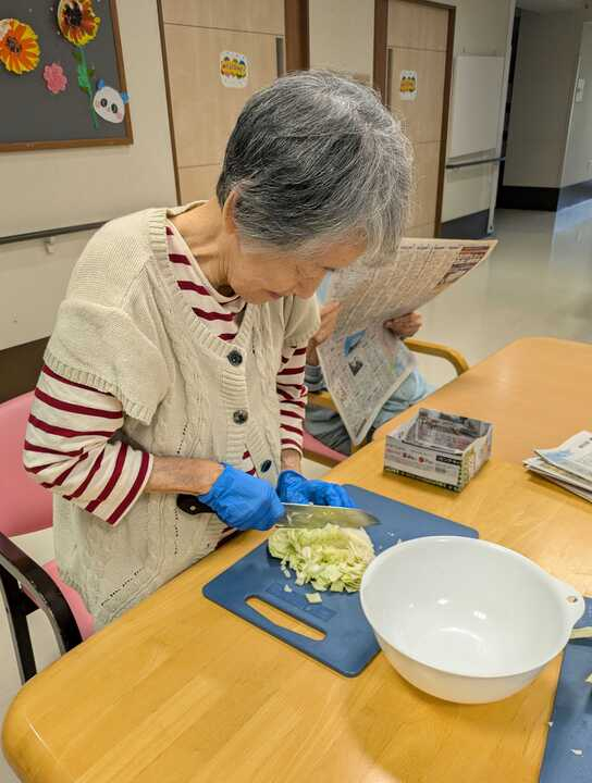 慣れた手つきで手際よく野菜が刻まれていきます。