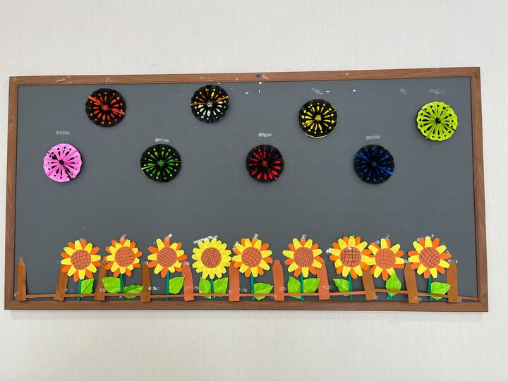 花火とヒマワリの壁絵が完成しましたー!