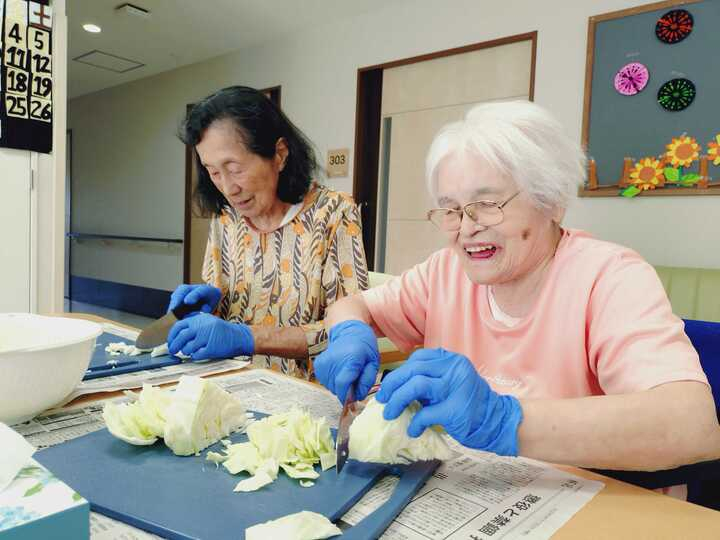 包丁もお話も弾みつつ、あっという間にキャベツの千切りが出来ていきます♪
