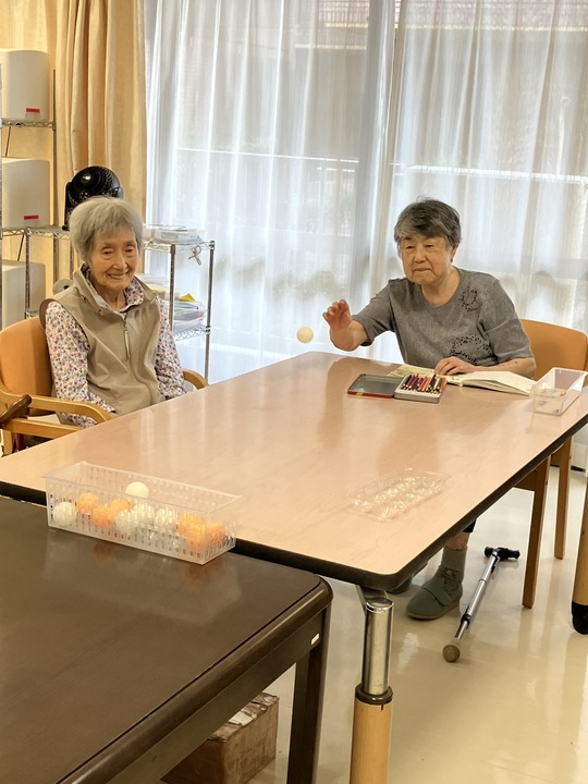 ちょっと離れたところからピンポン玉を投げて、かごに入ったら1点ゲット!