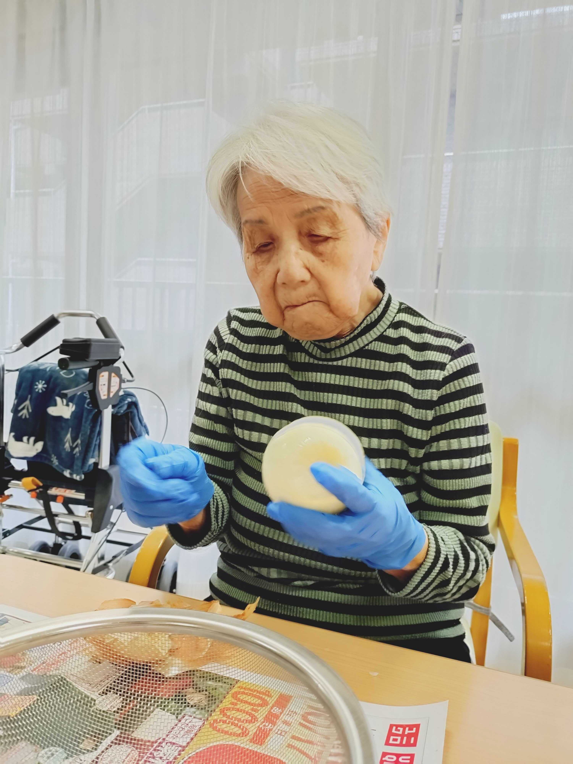 玉ねぎの皮を抜いています。