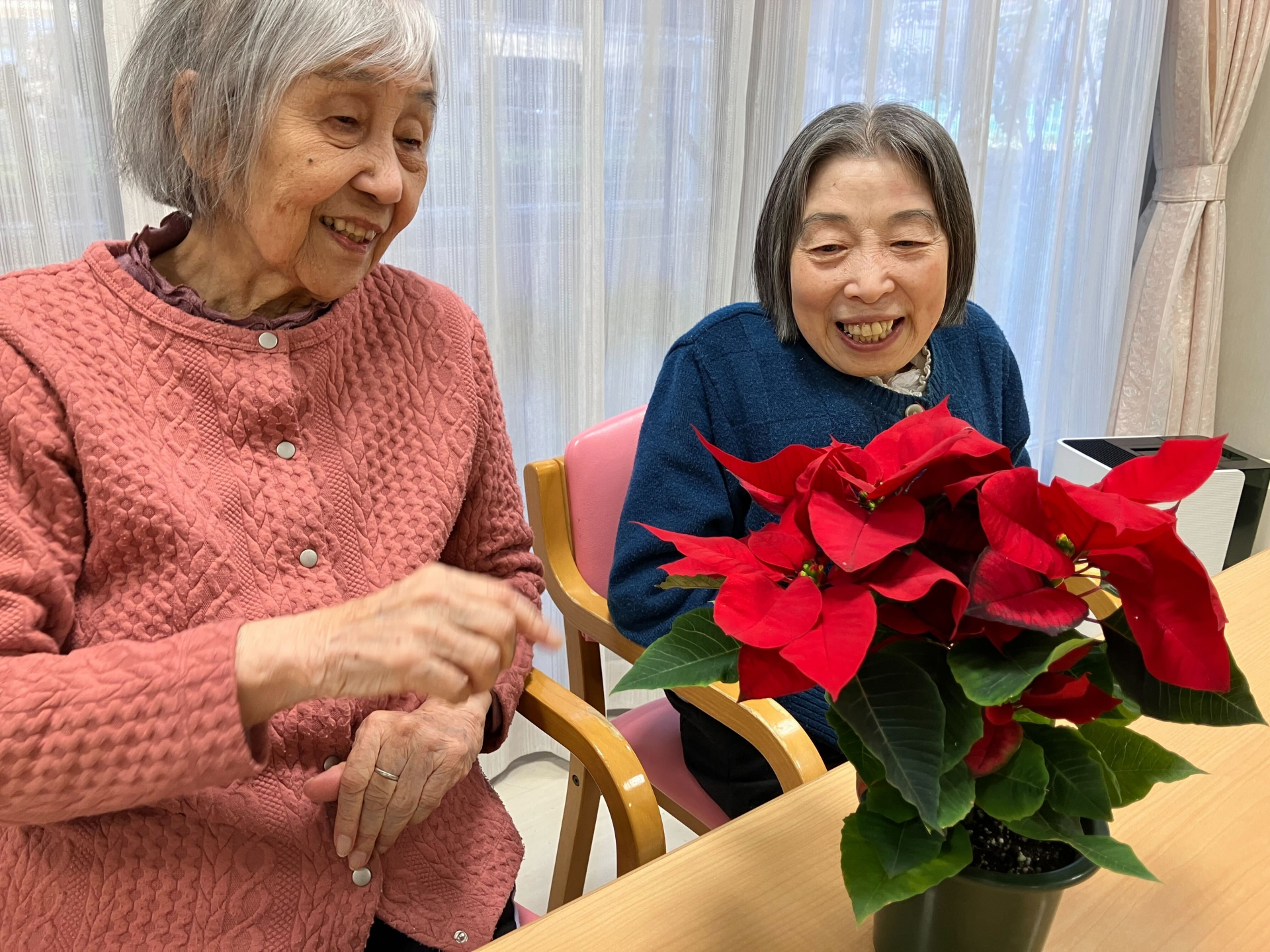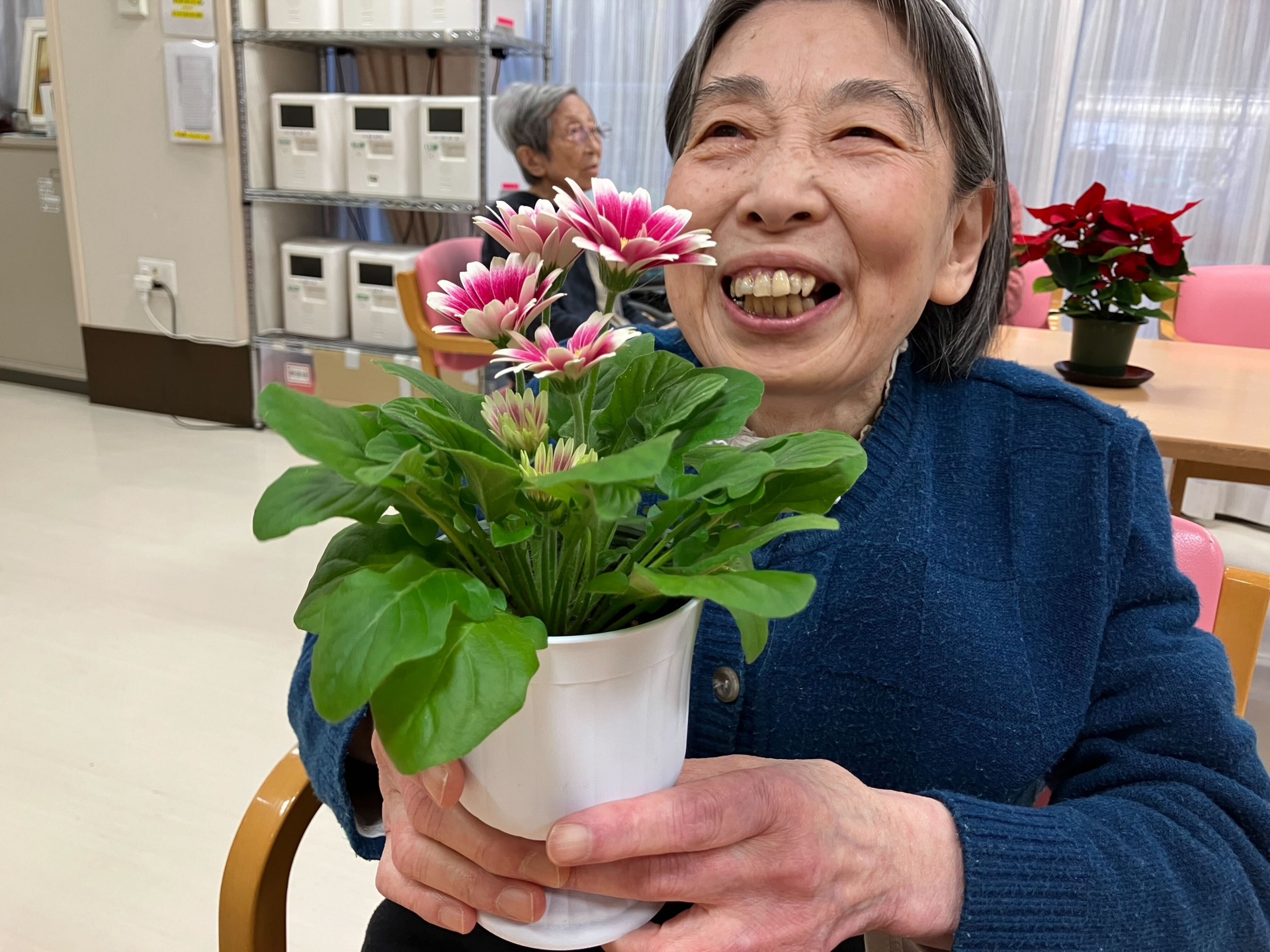 【グループホーム コミュニケーション】かわいい花と満開の笑顔です(*´▽`*)