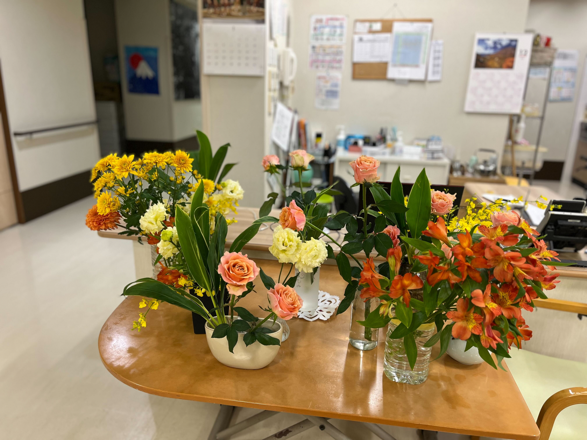 先日行われた板橋四葉の開所式でいただいた素敵なお花を、入居者様に生けていただきました♪