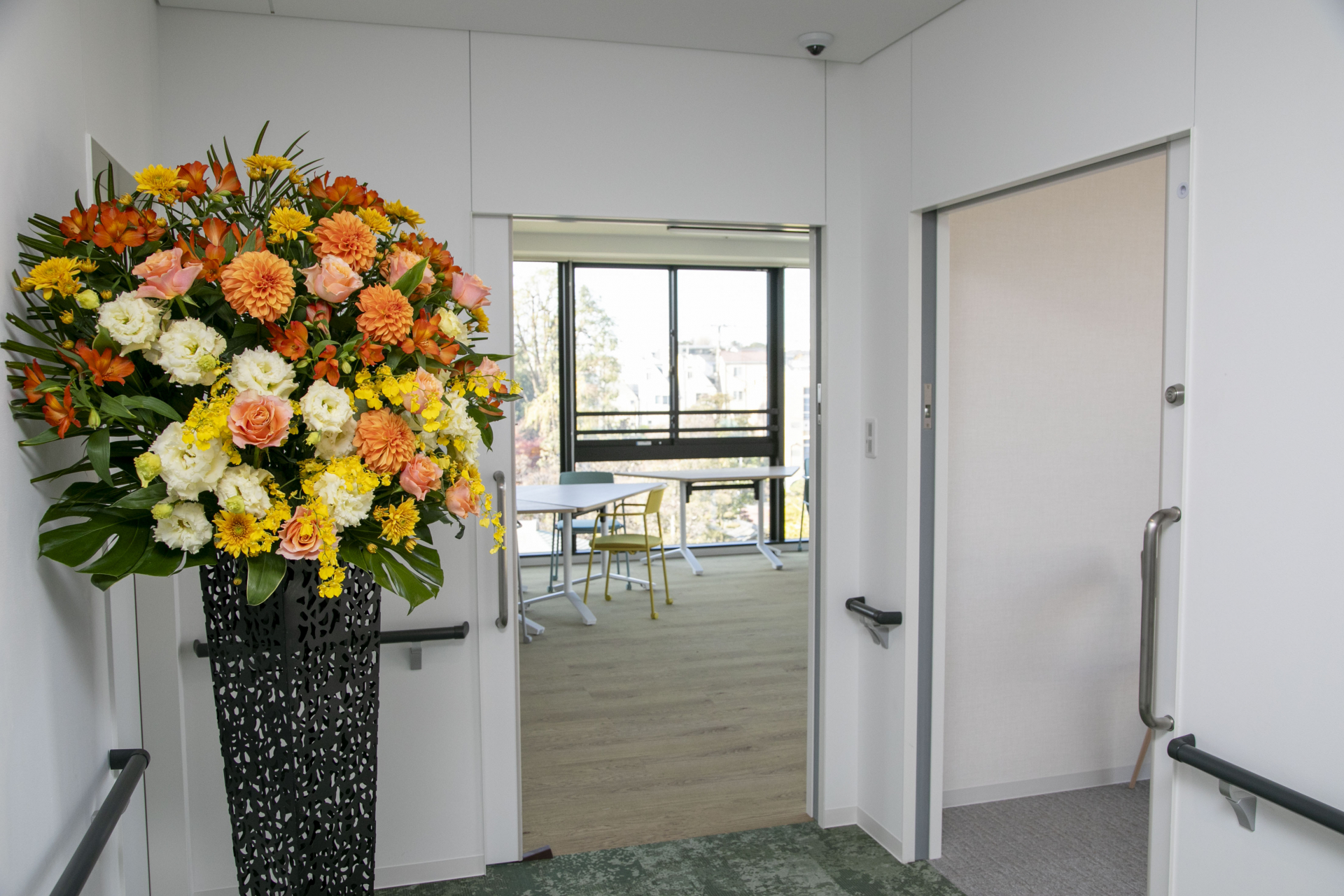 完成したお花は、各フロア・エントランスに飾り、一気に華やかになりました~♪