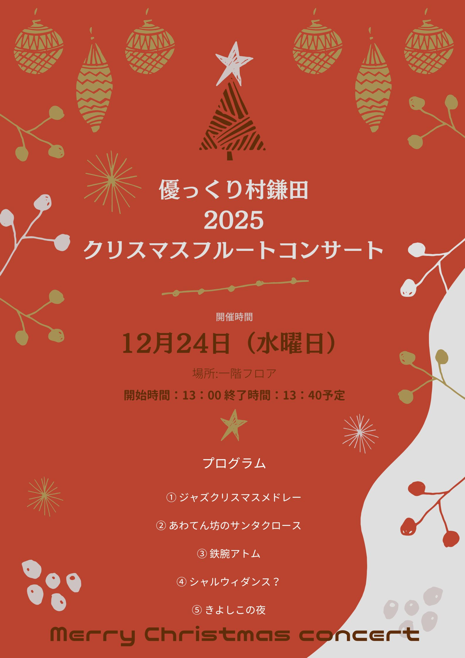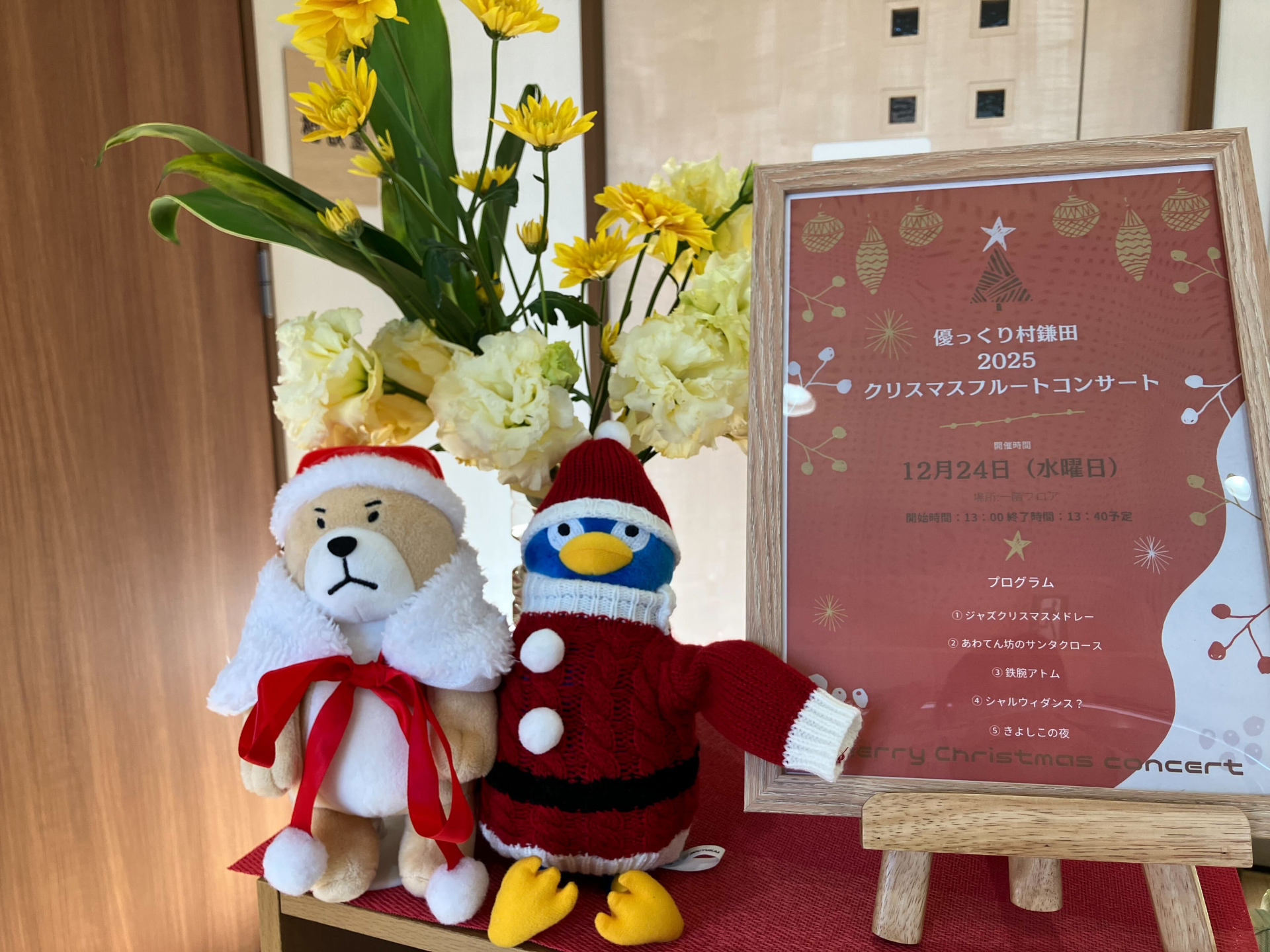 優っくり村鎌田では、12月24日(水)にクリスマスフルートコンサートを開催します♪