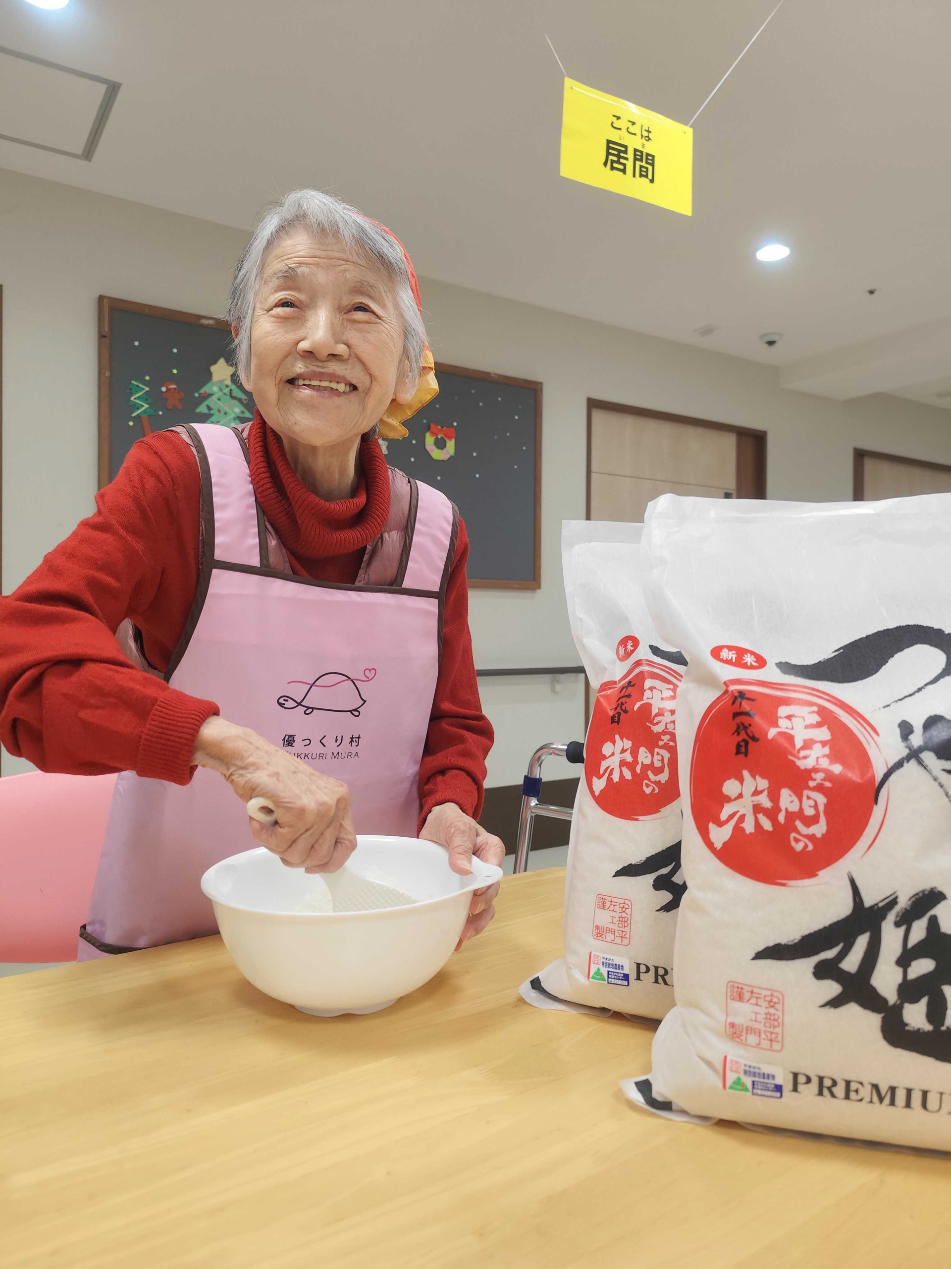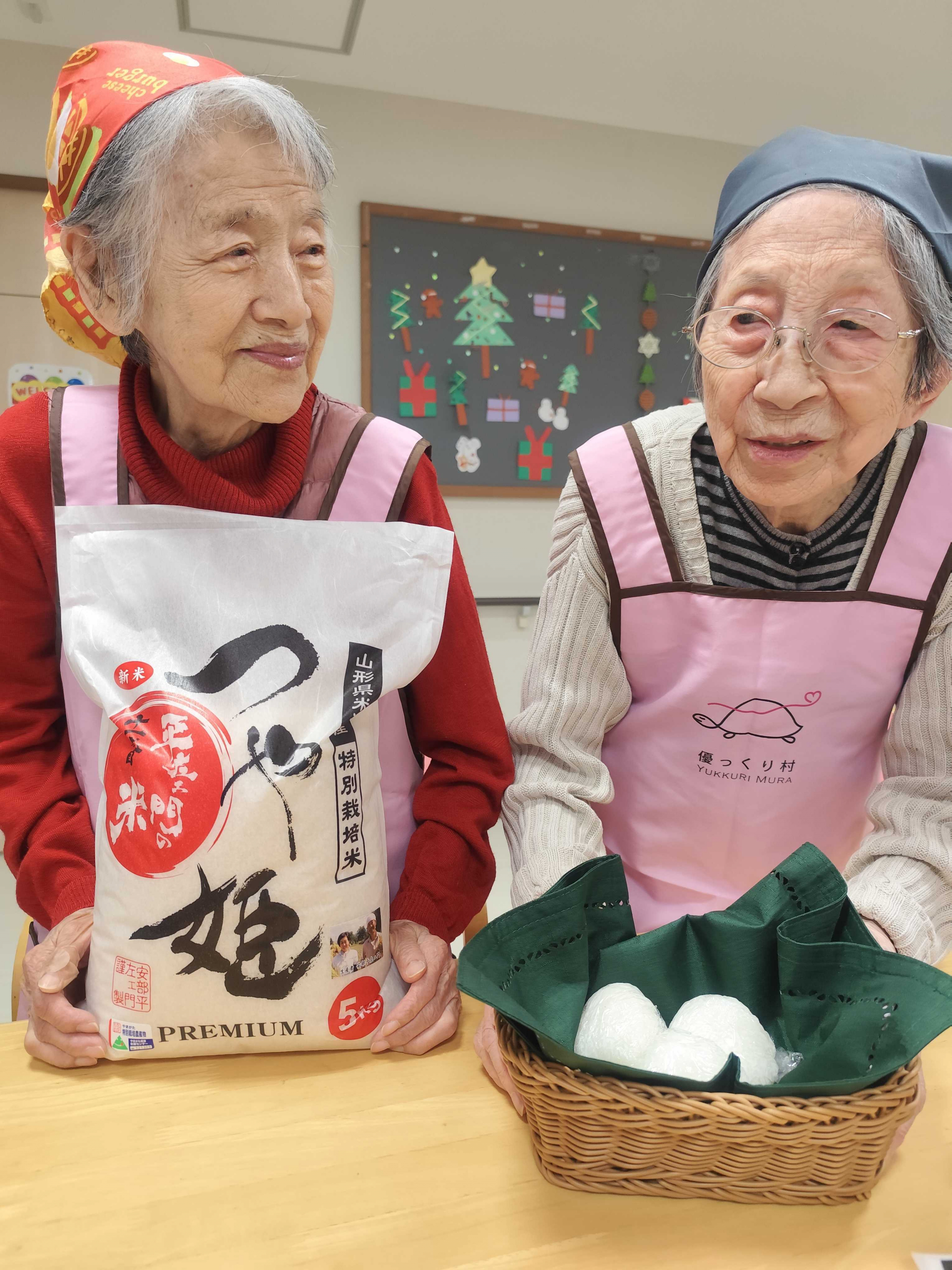 【グループホーム 暮らし】マルヘイ農園さんのつや姫でおにぎりづくりです(*´▽`*)
