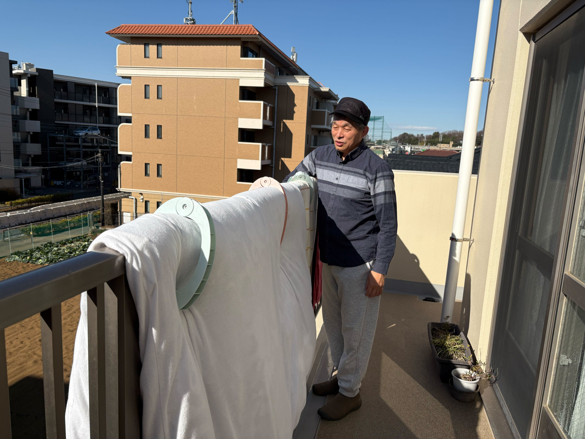 【介護施設 日常風景】快晴の空と、布団干しの時間です(*´▽`*)