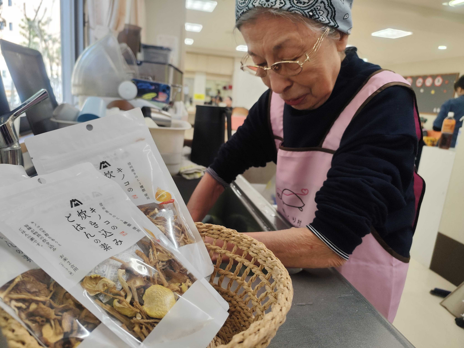 【優っくり村鎌田 日常の様子】キノコの炊き込みご飯づくり。