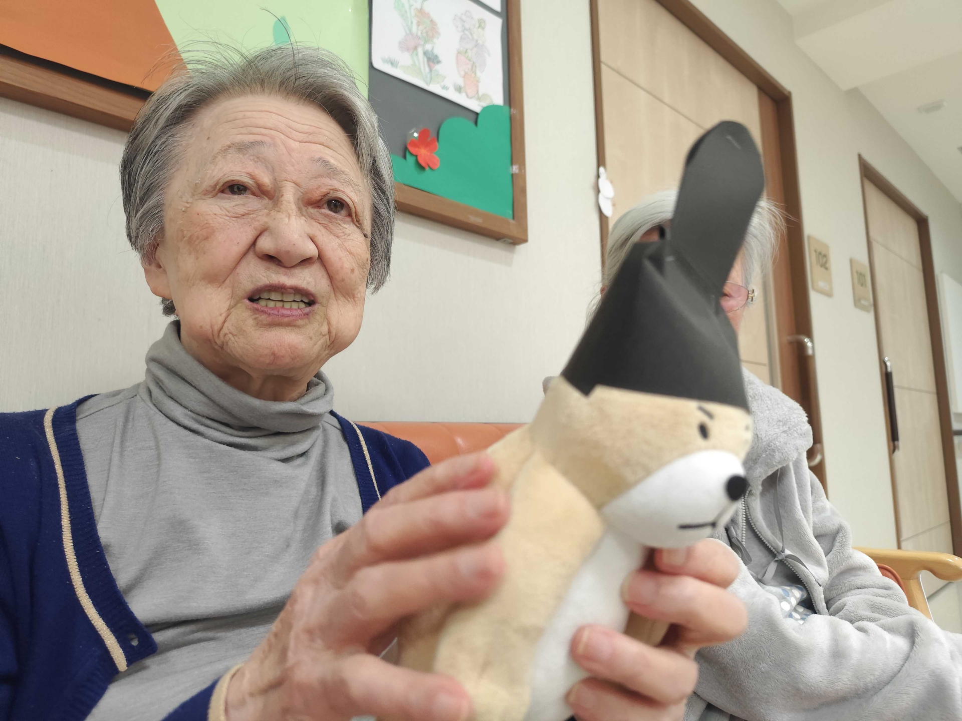 帽子をかぶると、なんとも言えないかわいらしさで、「似合ってるね」「かわいいね」と、皆さんの笑顔が広がりました。