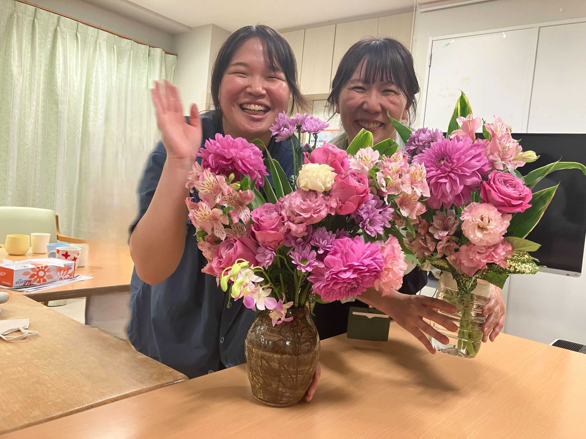 完成したお花を前に、みなさんの表情もとてもいきいきとされていて、その場にいる全員が自然と笑顔に。