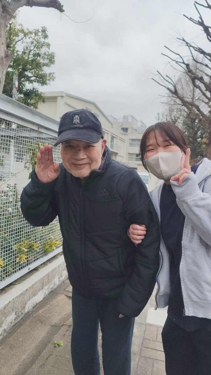 【世田谷区 グループホーム】曇り空でも笑顔満開!春のお散歩で桜を楽しみました。