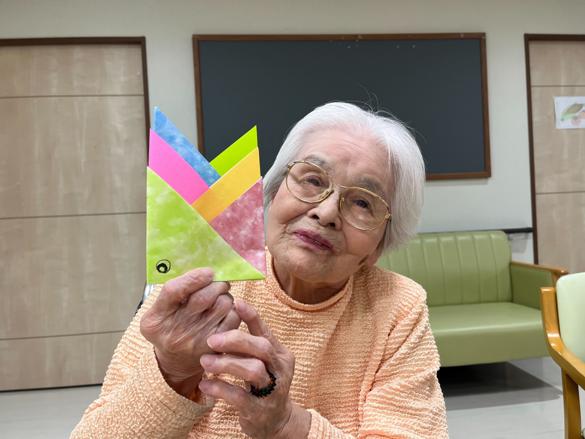 みんなで三角形にひたすら折っていただきます~