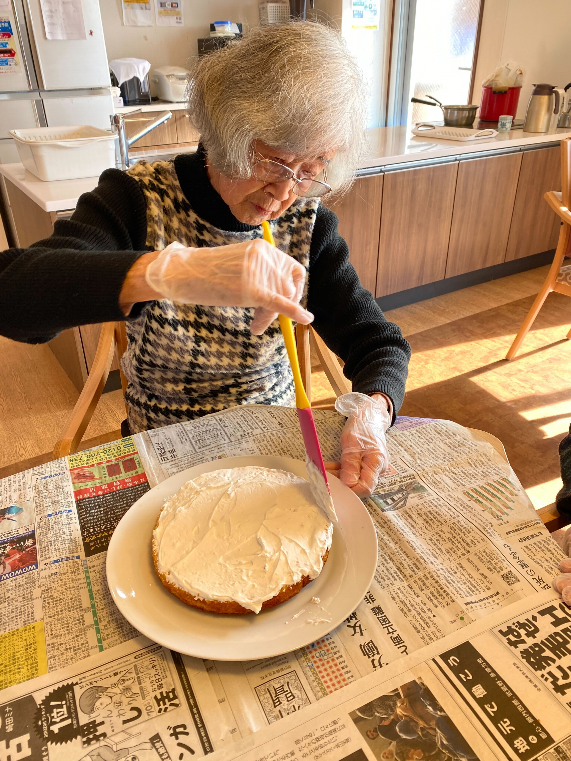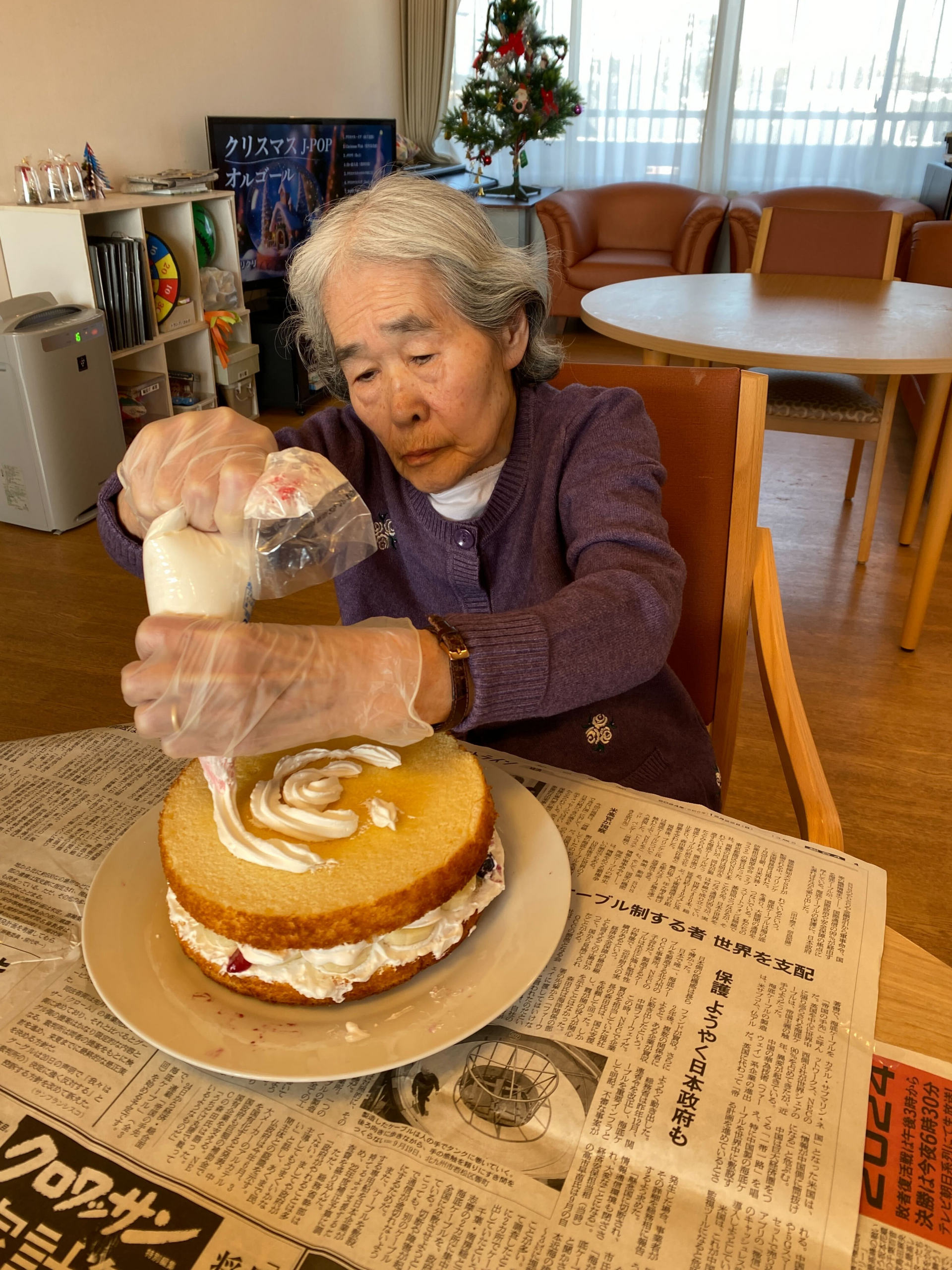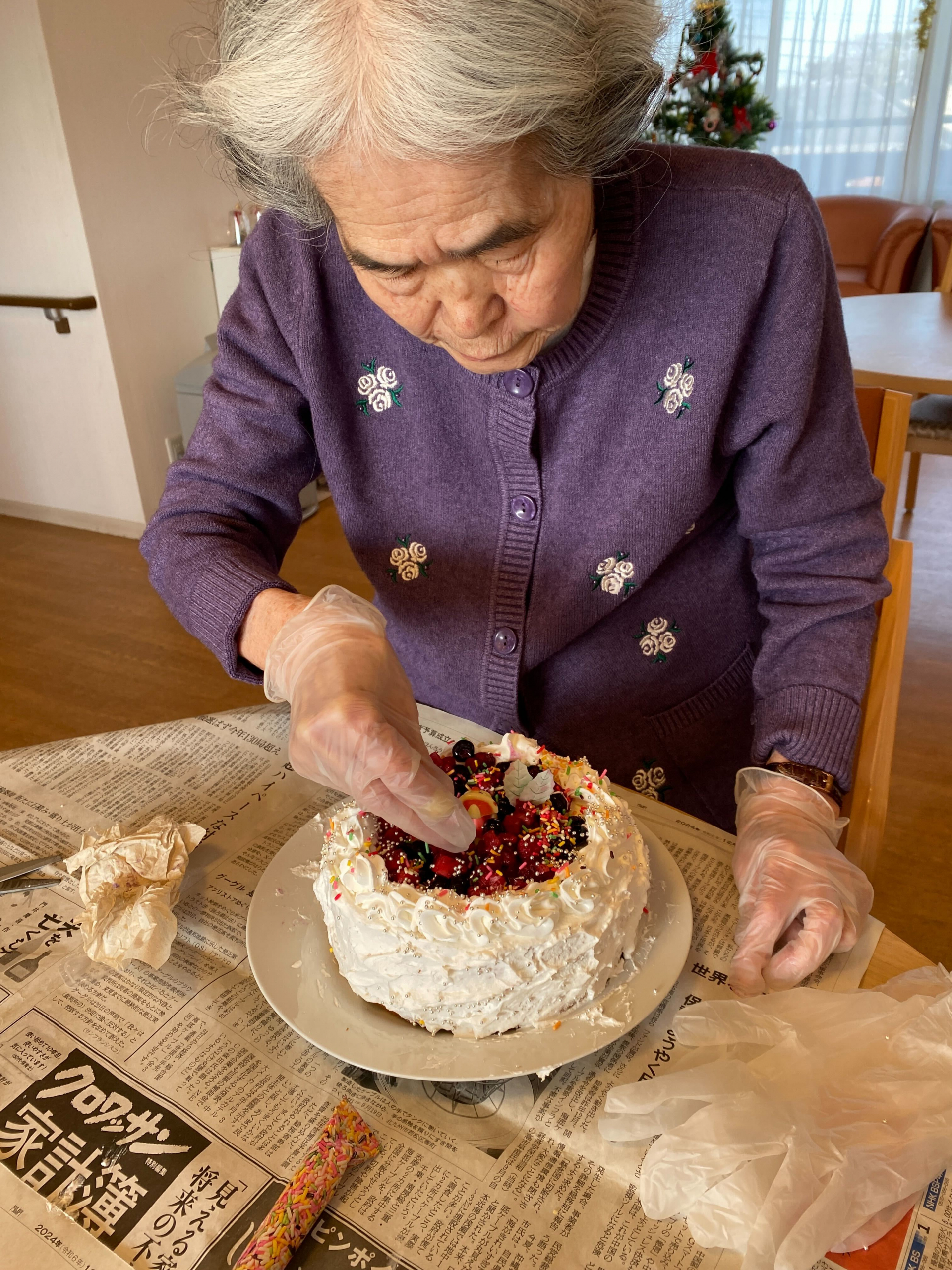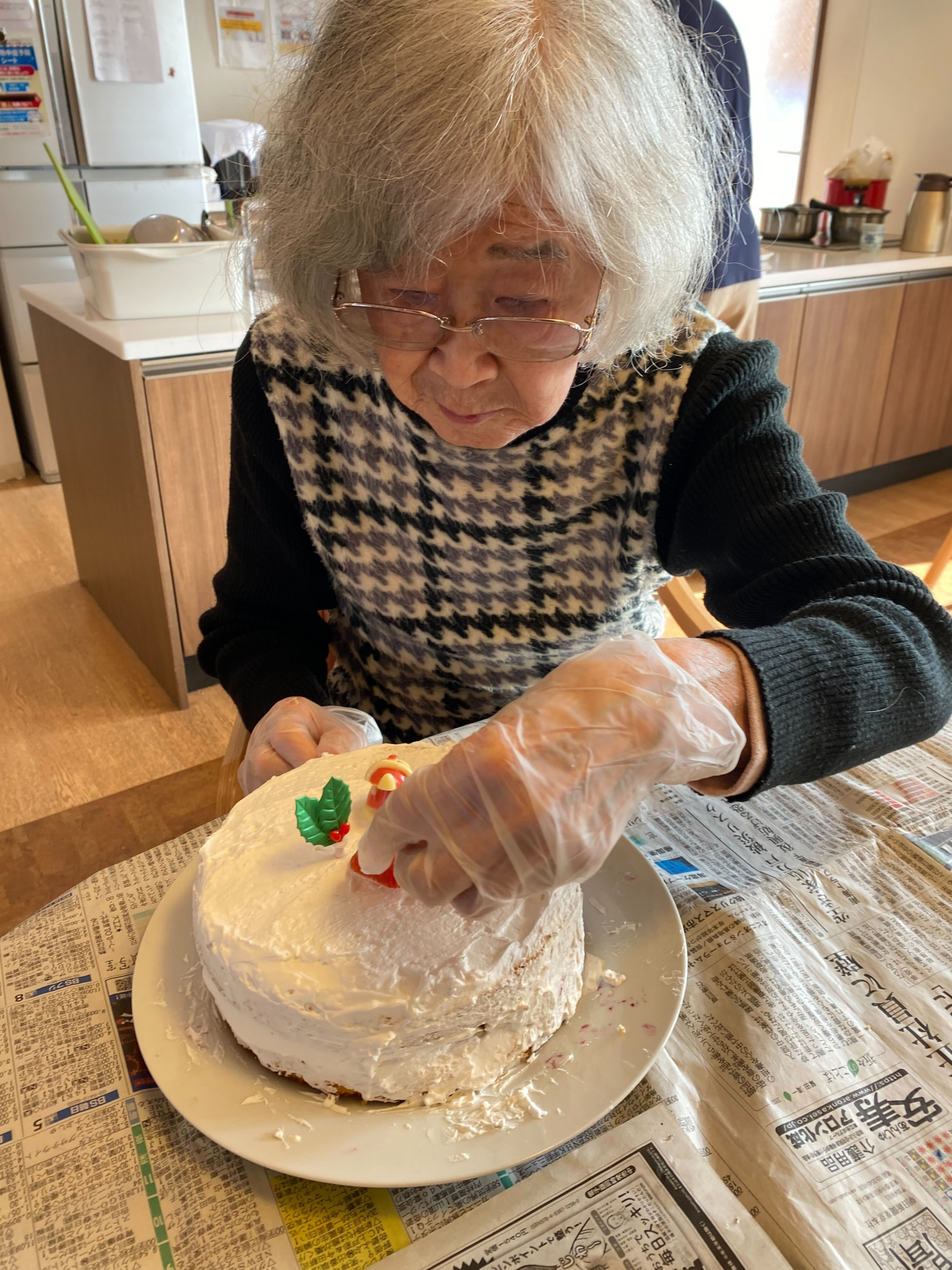 こんにちは!!今日はクリスマスの日ですが午前中に皆様と一緒にクリスマスケーキを作ってくれました。