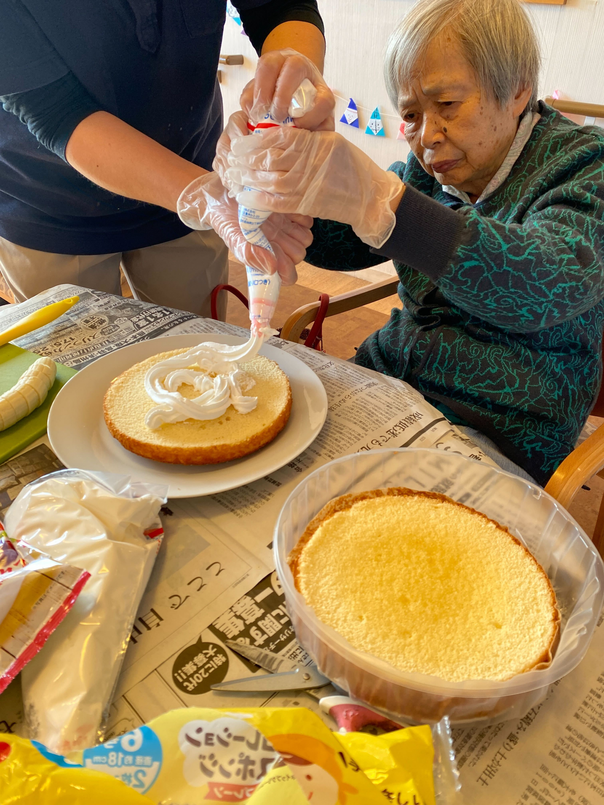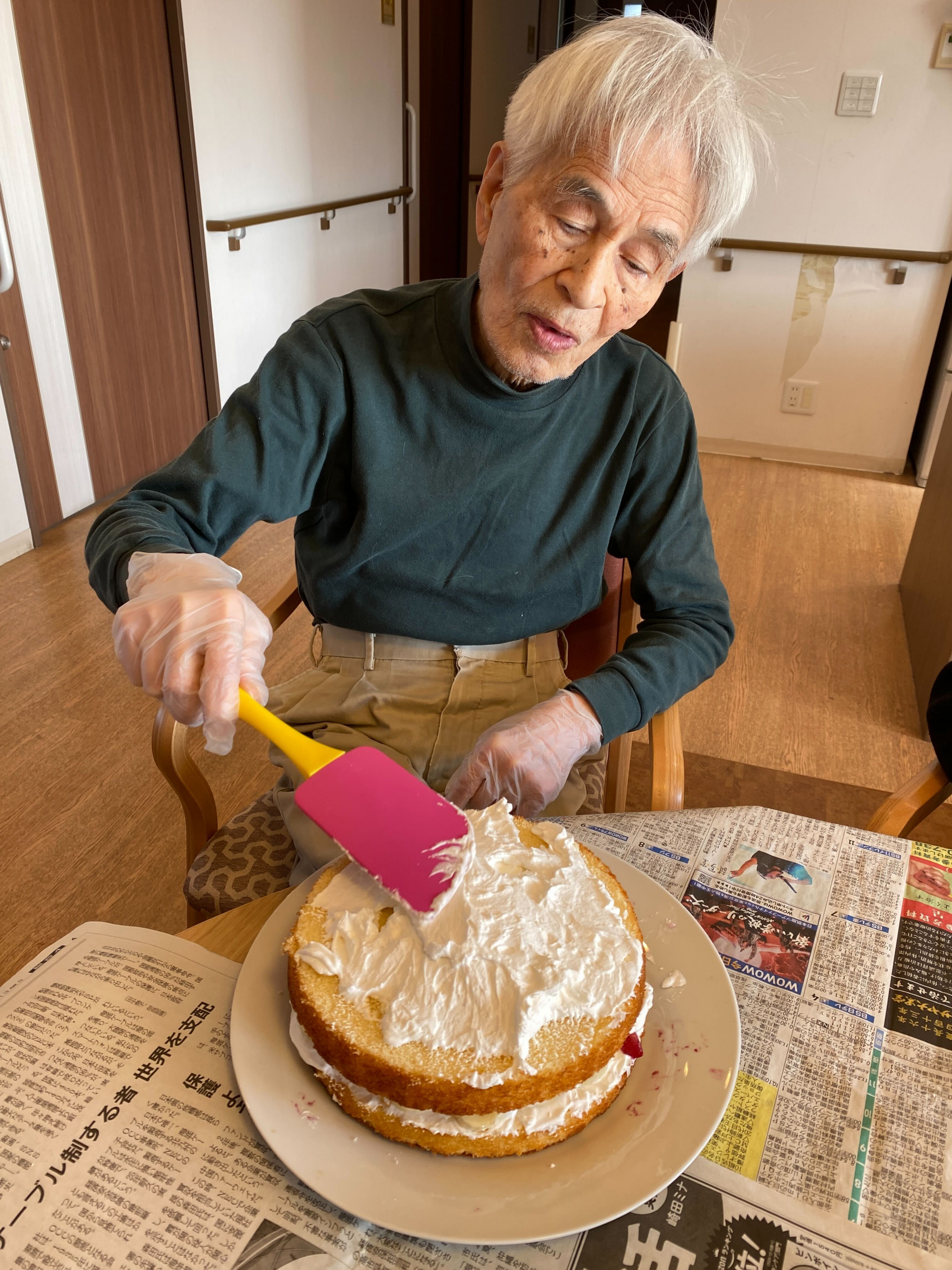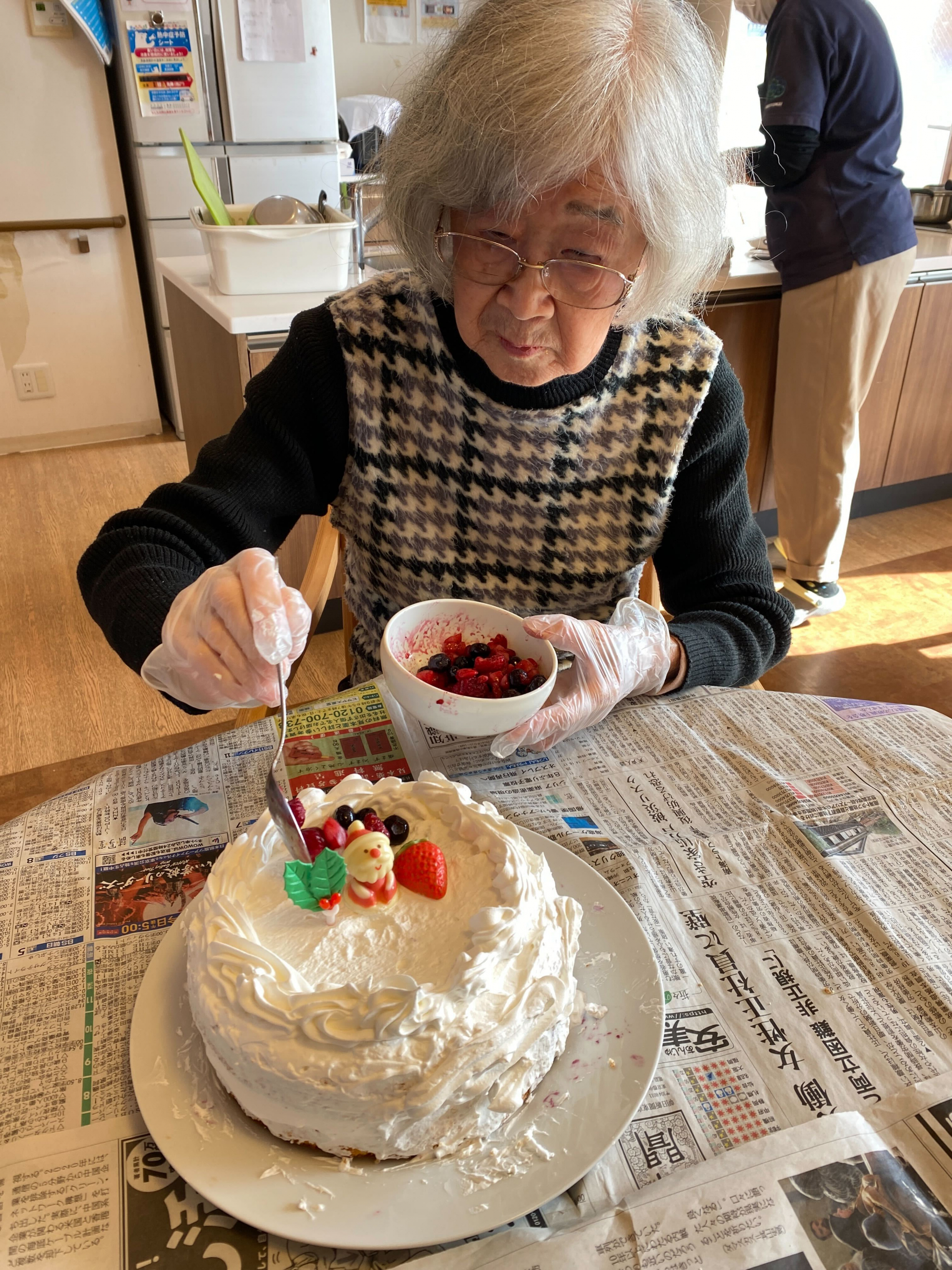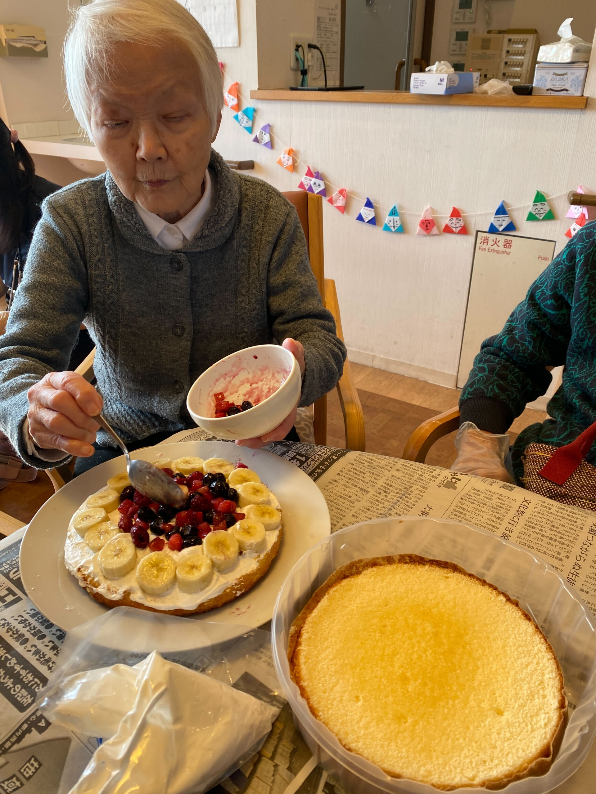 こんにちは!!今日はクリスマスの日ですが午前中に皆様と一緒にクリスマスケーキを作ってくれました。
